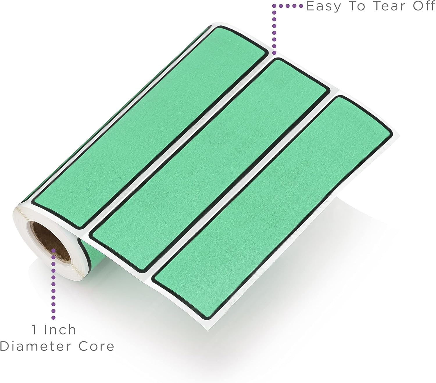 - Self-adhesive binder labels, 5 3/8” L x 1 3/8” H – 200 sticker labels per roll, perforated, available in up to 19 bold colors