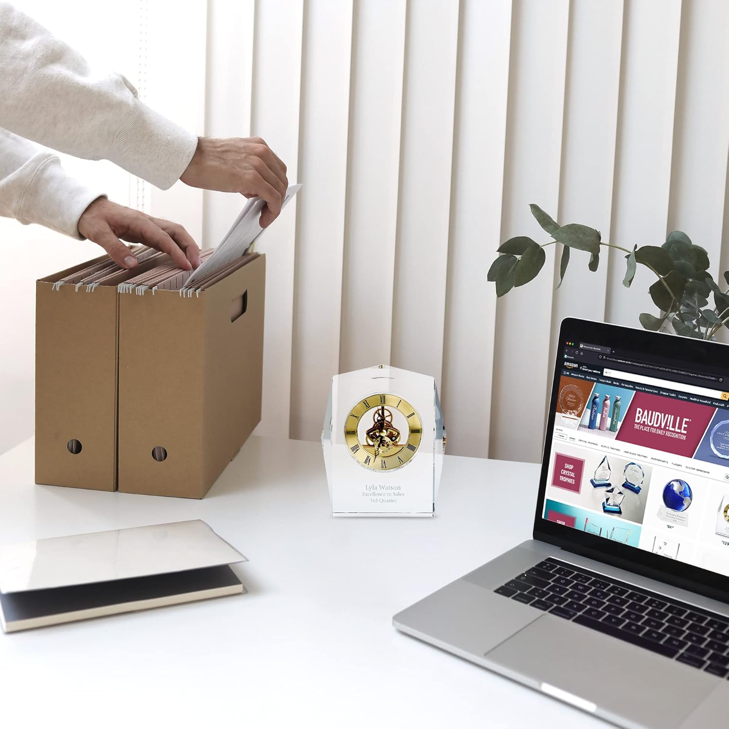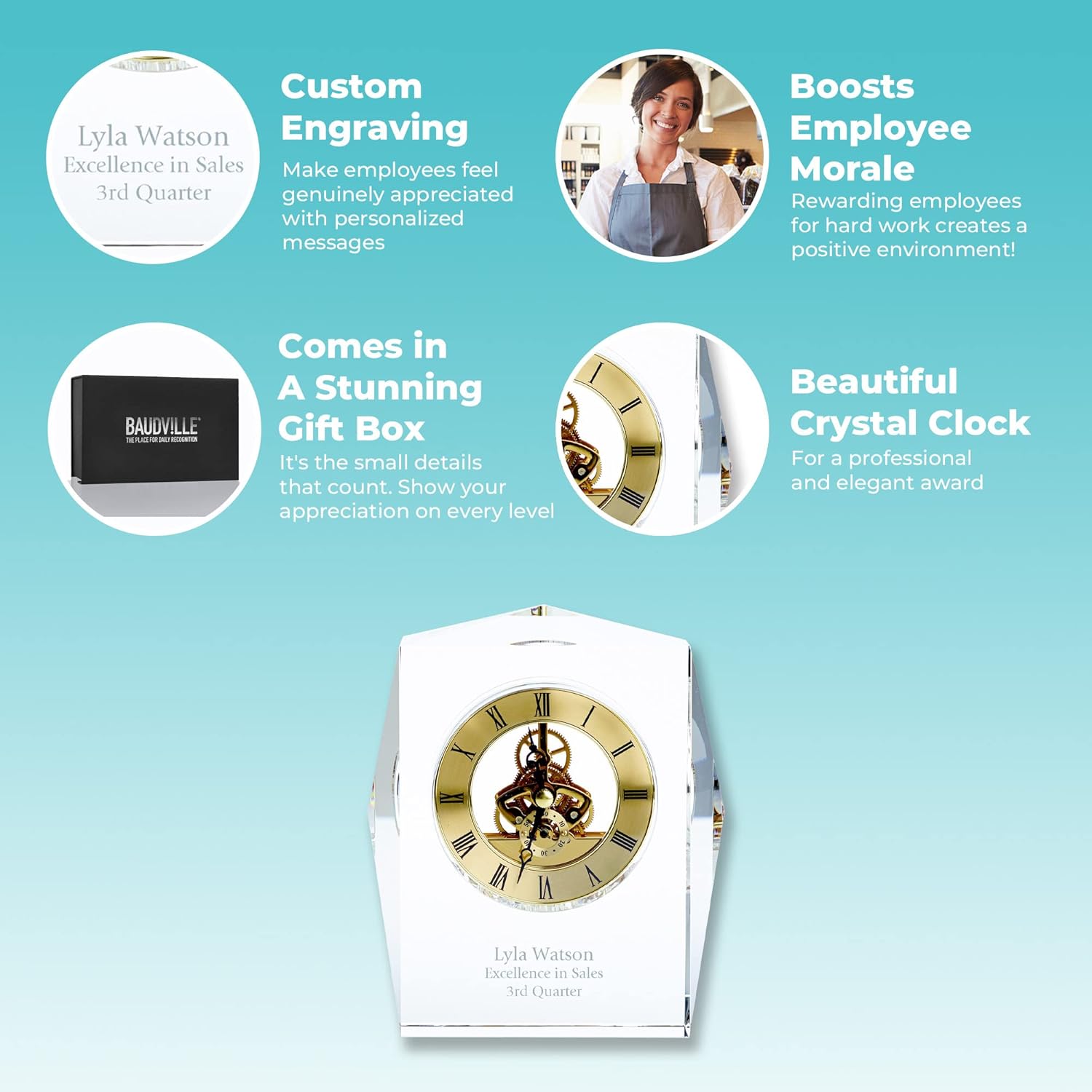 - PERSONALIZED AWARDS - Create an engraved, personalized desk or shelf clock for employee recognition, gift for your boss, retirement gifts, and show appreciation for your workforce's achievements in our quality crystal glass trophies