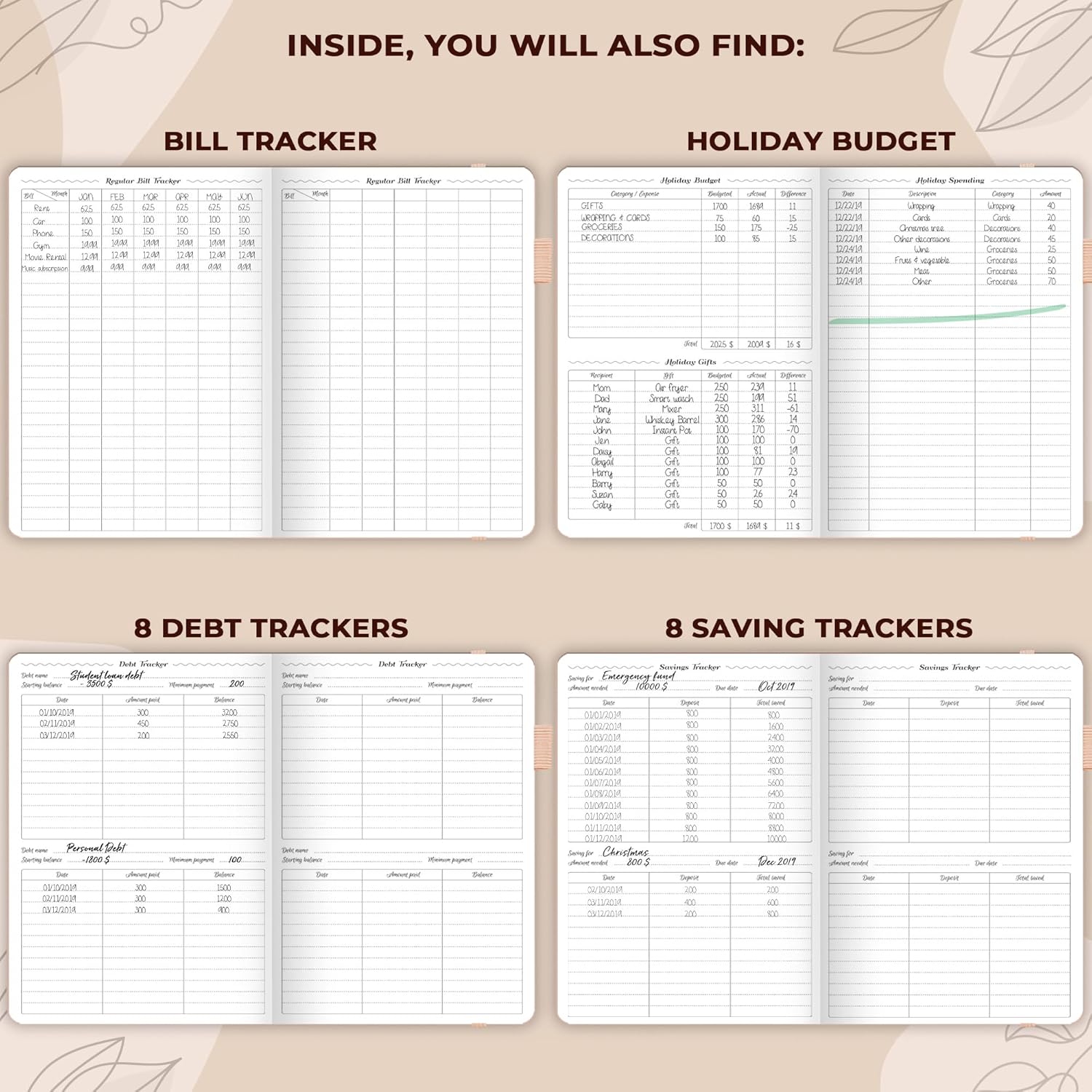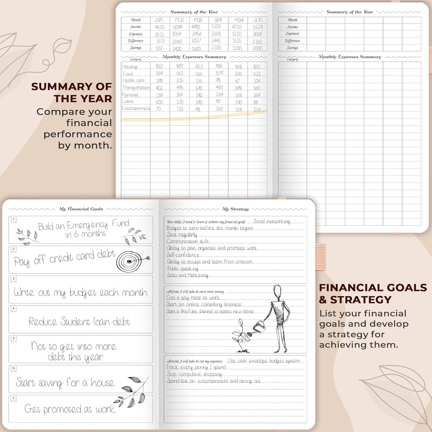 - PERSONAL FINANCE & BUDGETING MADE EASY - Each month, set monthly goals, add reminders of upcoming purchases, bills and payments, make a monthly budget, and track your spending using a dedicated expense tracker.