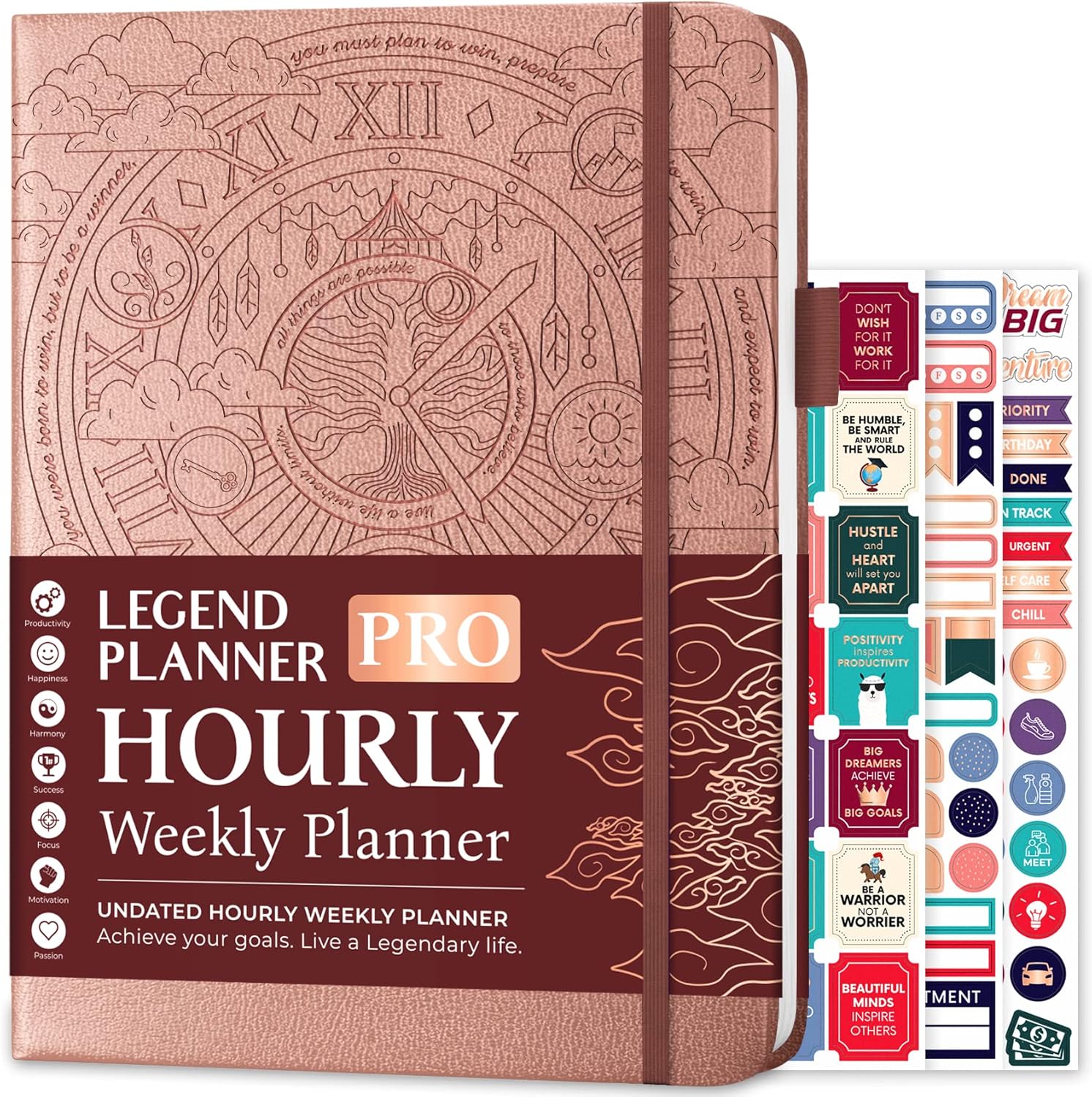 Legend Planner PRO Hourly Schedule - Weekly & Daily Organizer with Time Slots. Appointment Book Journal for Work & Personal, A4 (Rose Gold)