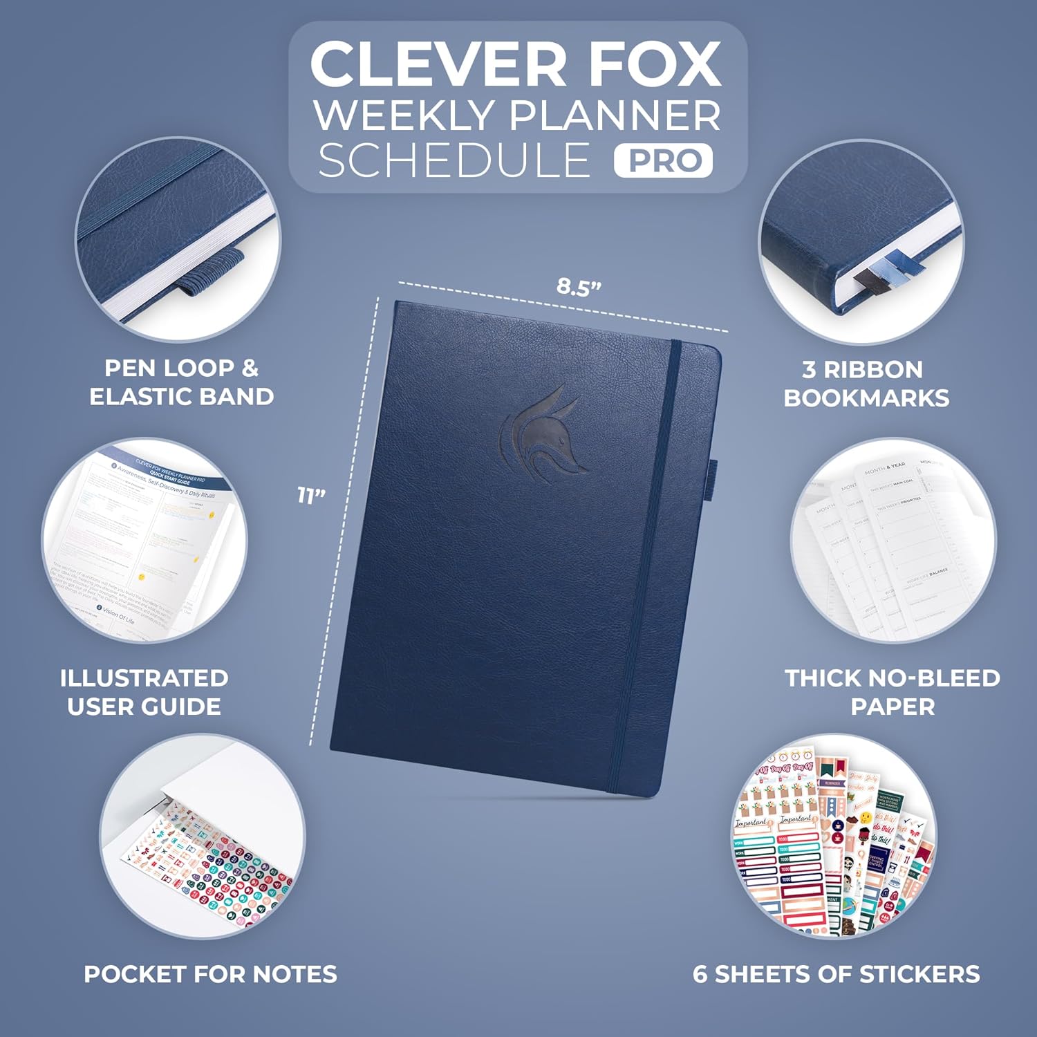 Clever Fox Planner PRO Schedule – Undated Weekly & Monthly Life Planner with Time Slots, Appointment Book & Daily Organizer, A4 (Dark Blue)