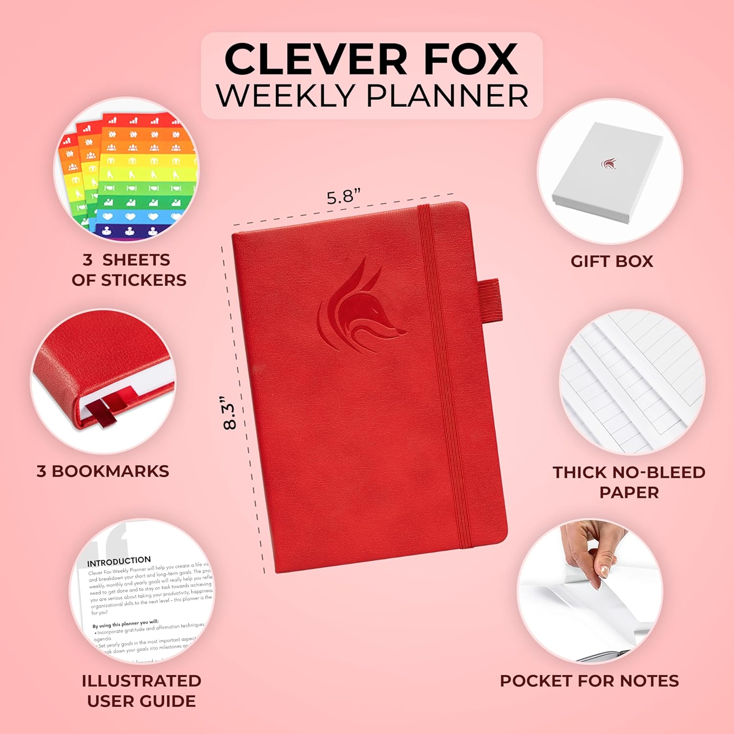 Clever Fox Planner – Undated Weekly & Monthly Planner for Productivity, Time Management & Goals – Organizer Journal – A5 (Red)