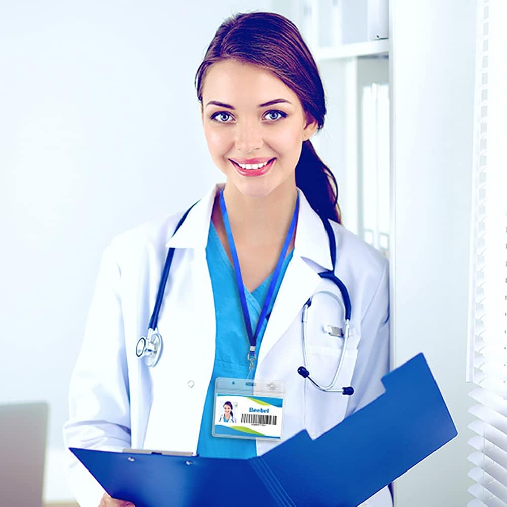 Beebel ID Badge Holder Lanyards with Waterproof Badge Card Bulk Lanyard for Name Tags Holders(Black)