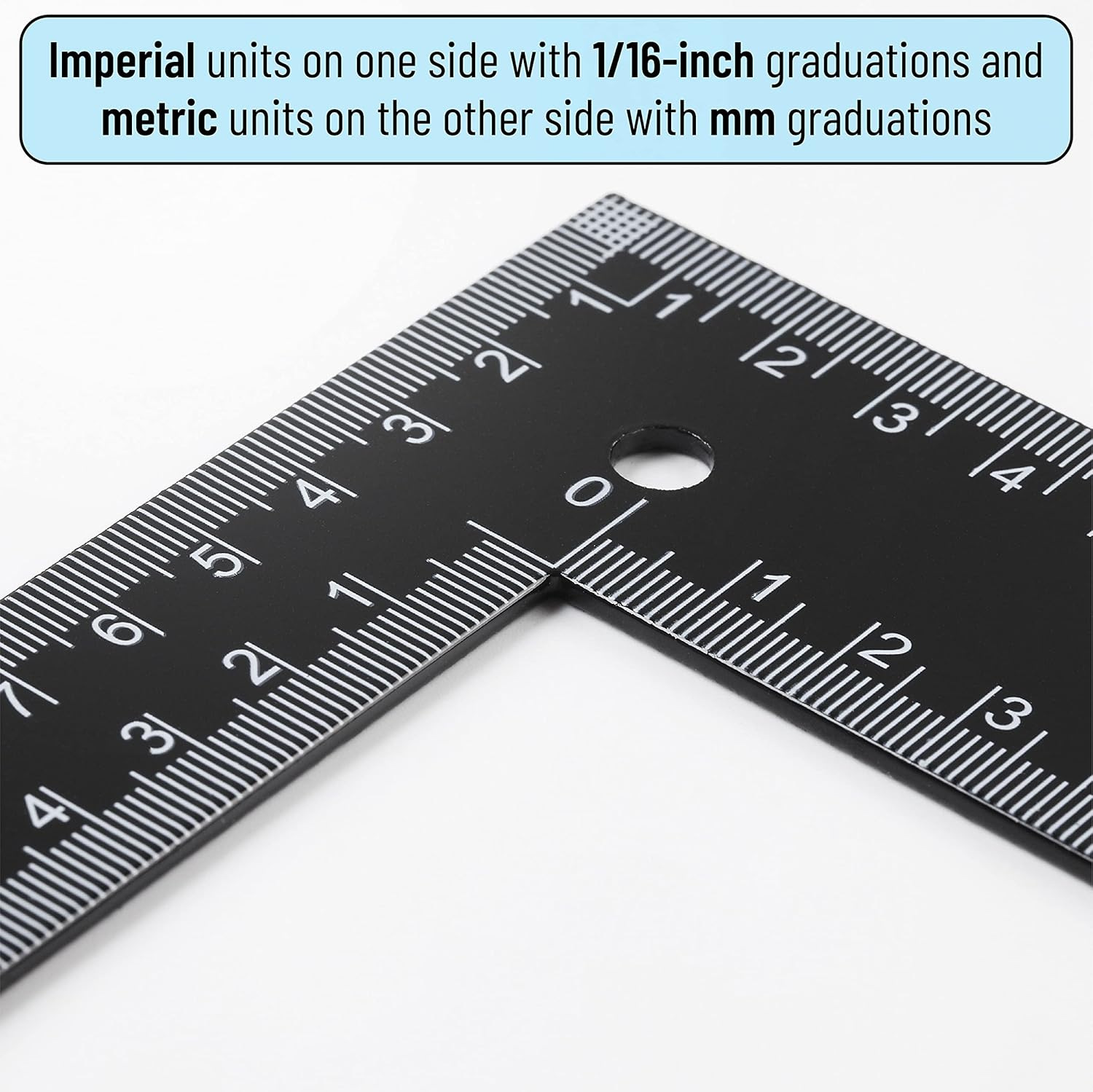 - This L Ruler Includes Imperial Units On One Side With 1/16-Inch Graduations And Metric Units On The Other Side With mm Graduation