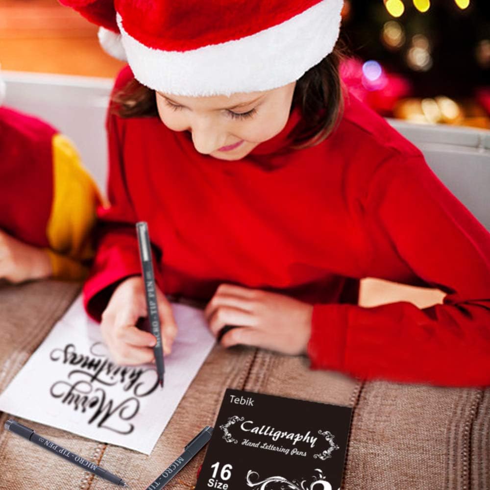 16 Pack Calligraphy Pens, Hand Lettering Pens, Brush Markers Black Ink for Beginners Writing, Lettering, Journaling, Art Drawing, Signature, Illustrations and Office School Supplies