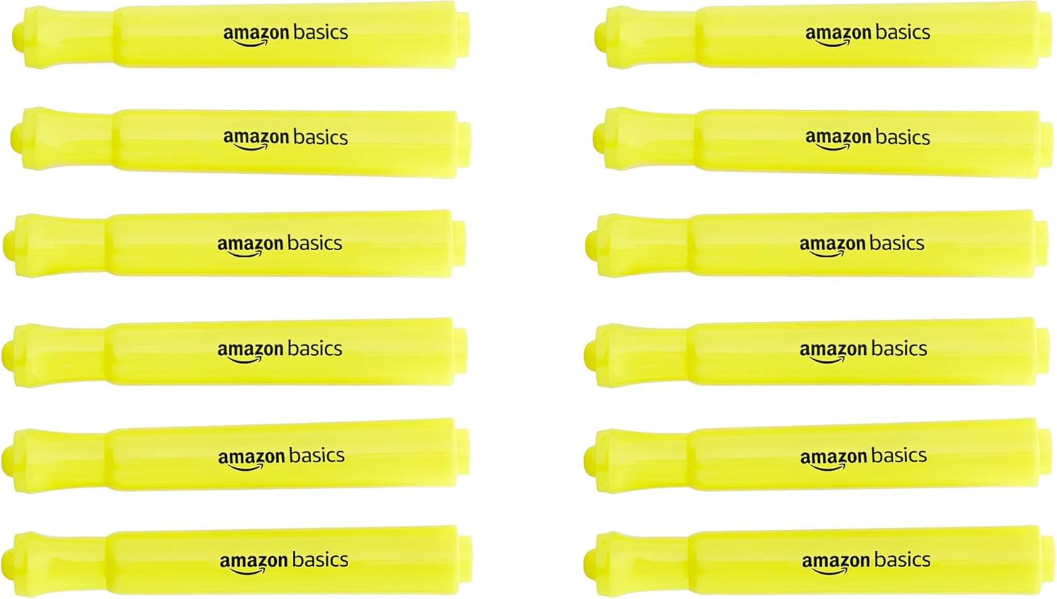 Amazon Basics Highlighters 12 Pack, Yellow Colors, Chisel Tip,Bible Highlighter,Office and School Supplies