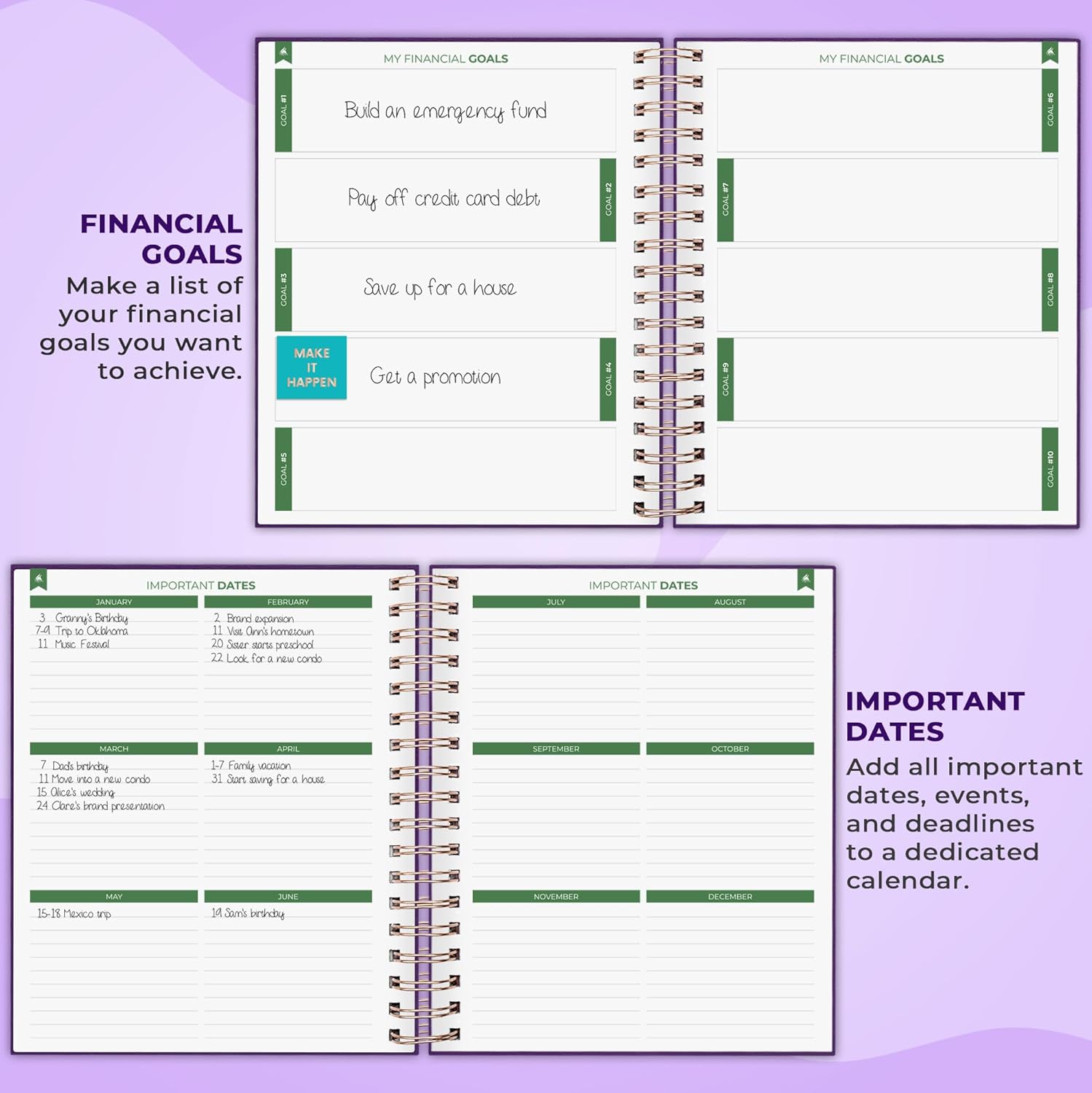 - FIND THE BEST WAY TO ACHIEVE YOUR FINANCIAL GOALS –The finance planner guides you in developing a solid financial strategy, breaking down ambitious goals into manageable monthly tasks, and reflecting on your monthly progress to keep getting better.