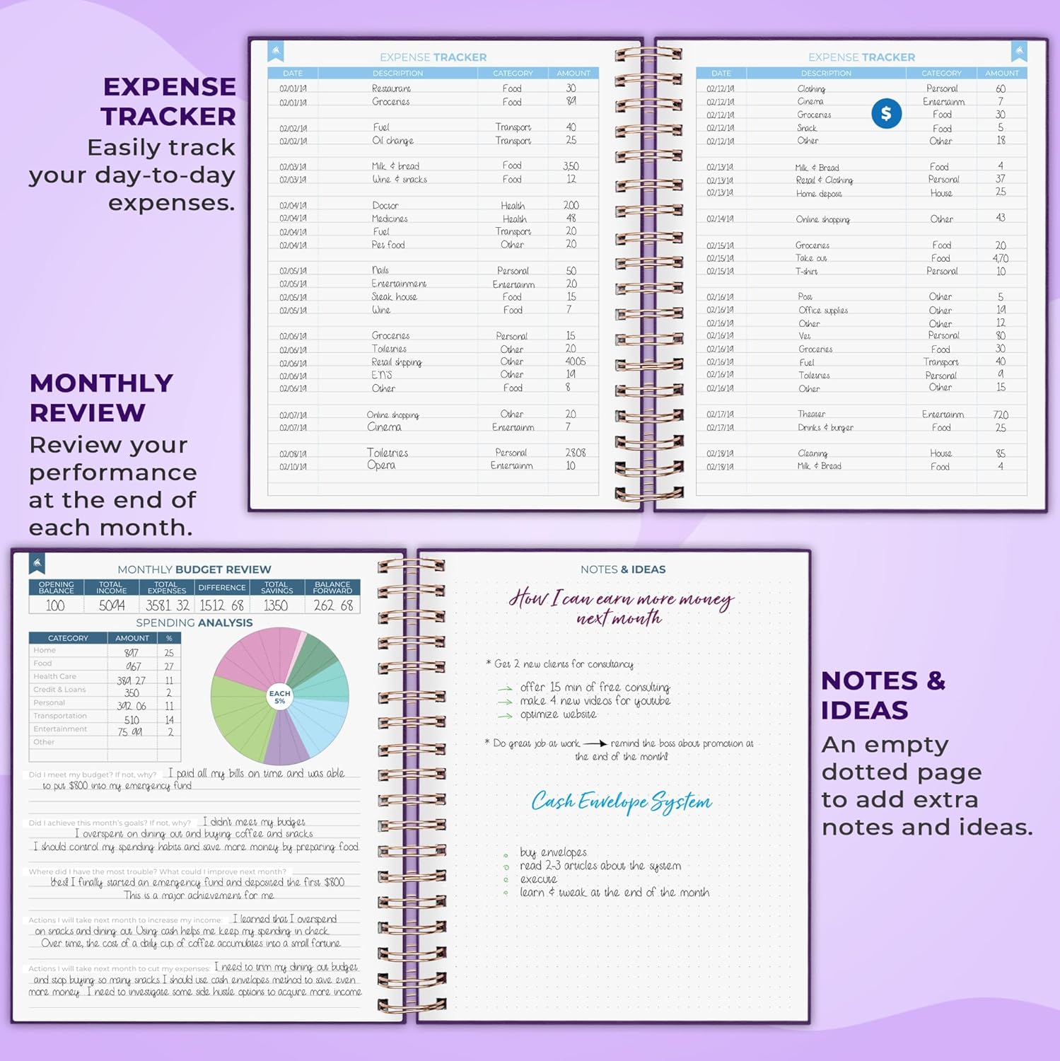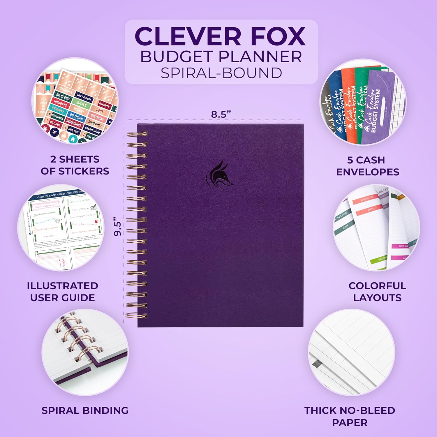 Clever Fox Budget Planner – Coiled Finance Book, Monthly Financial Journal, Budgeting Organizer & Expense Tracker Notebook, 8.5x9.5″ (Purple)