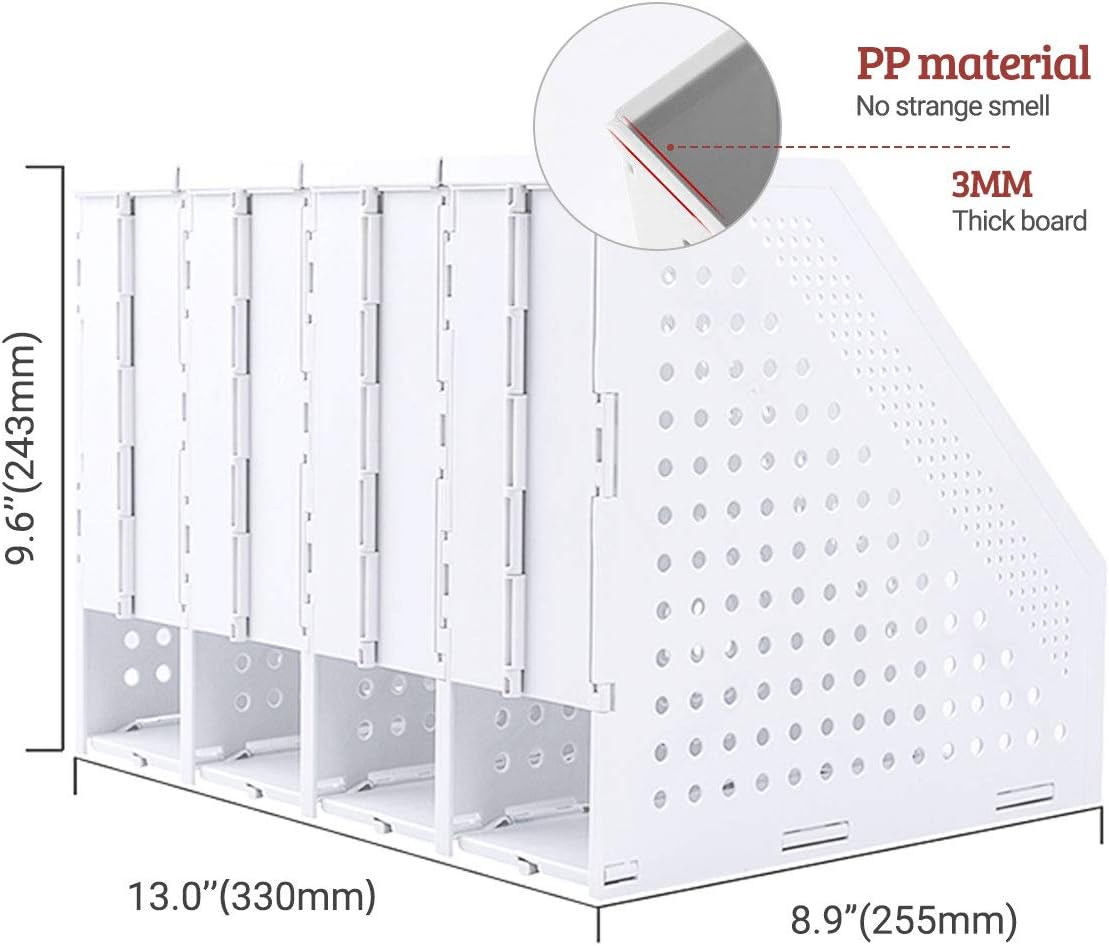 - COLLAPSIBLE MAGAZINE HOLDER: The binder holder organizer with foldable function allows it to flexibly expand or fold according to the size of the space. If you don't have too many files, you can fold the empty compartments to save desktop space.