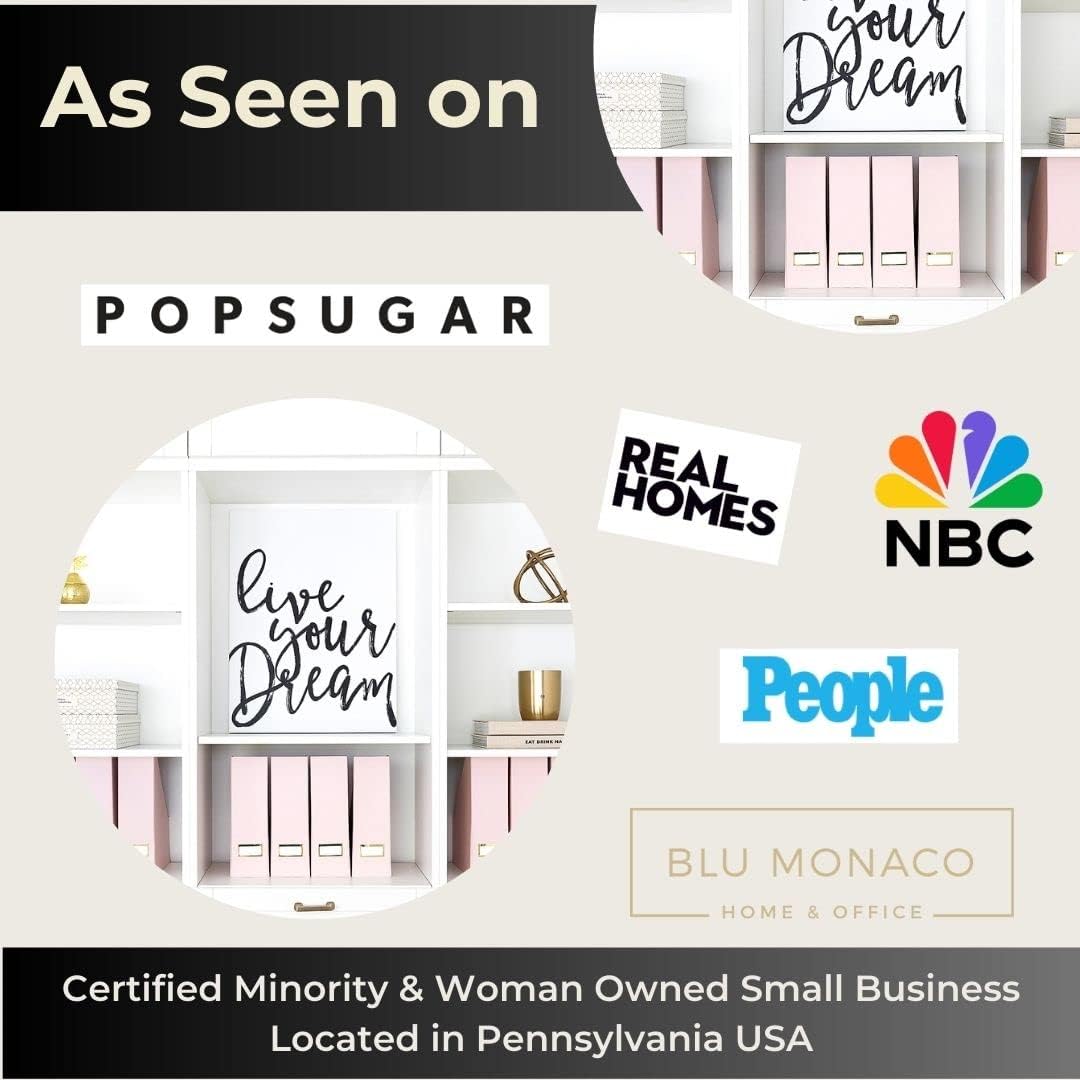 BLU MONACO Set of 6 Foldable Pink Magazine Holder with Gold Label Holders – Cute Stylish Magazine Storage for Shelves, and Closets – Book Bins, File Desk Organizer, and Document Storage