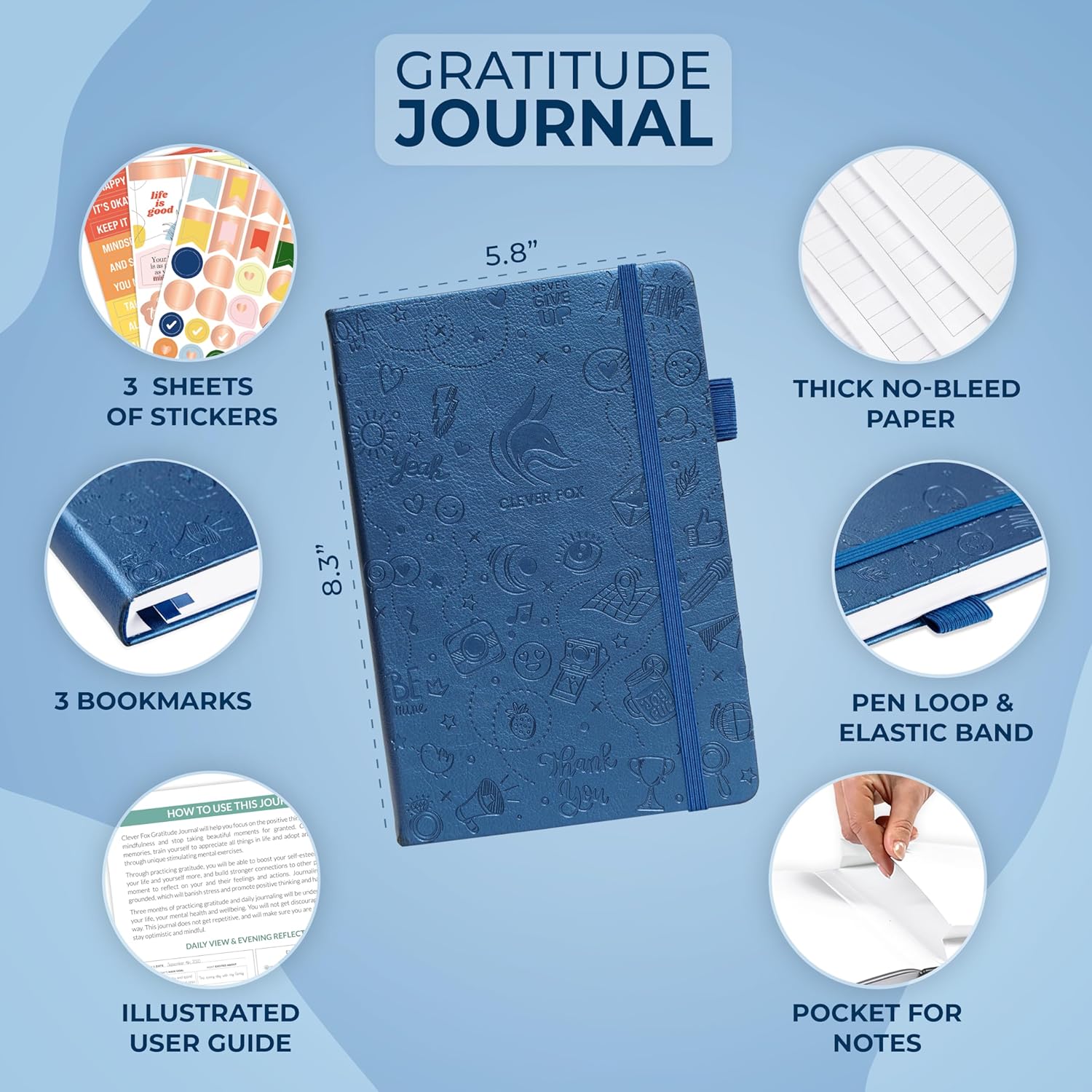 Clever Fox Gratitude Journal – Happiness, Positivity & Affirmation Daily Journal – Inspirational Daily Notebook – 3 Months, A5 (Mystic Blue)