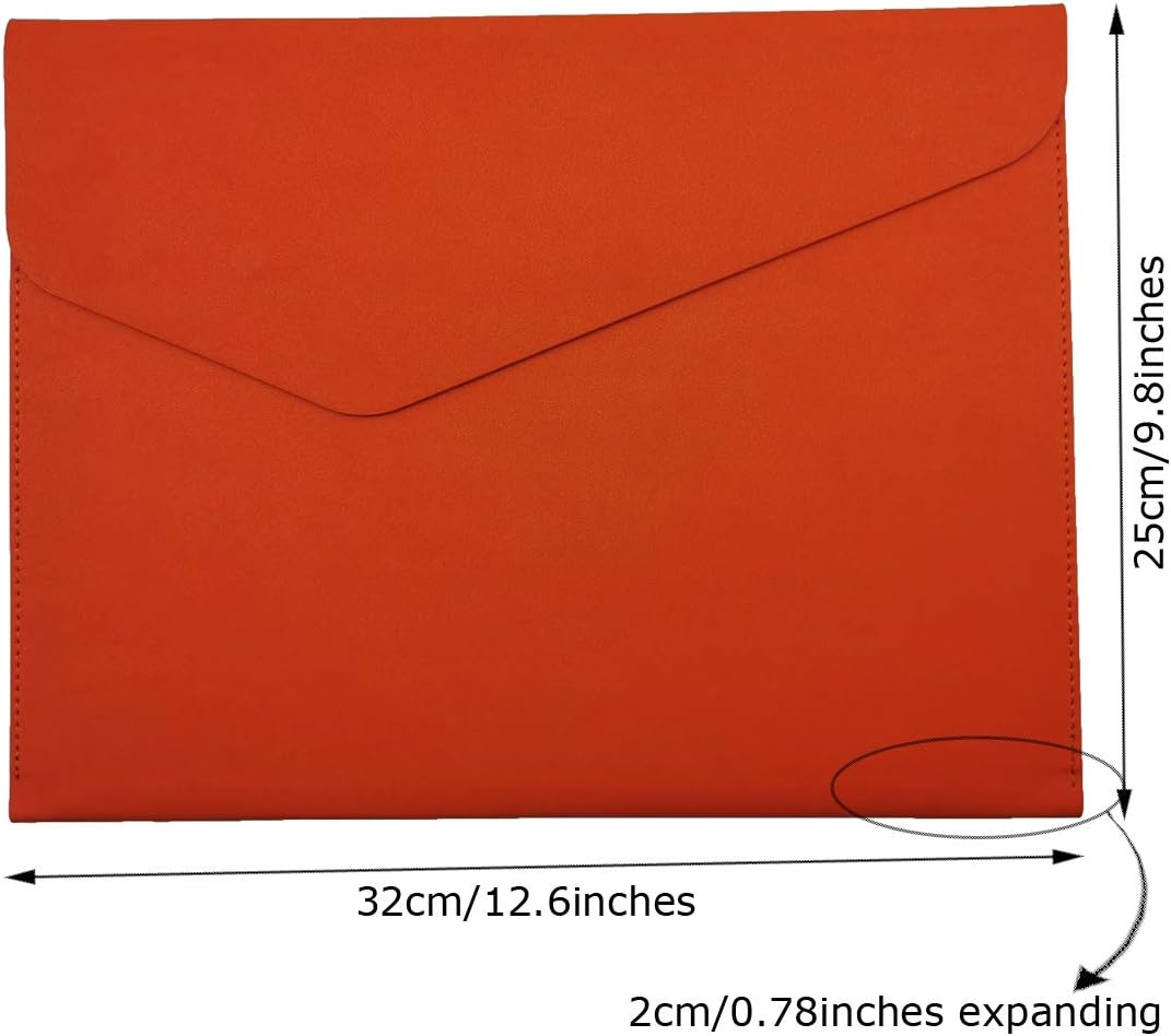 - STYLISH AND ATTRACTIVE: This leather envelope folder surface made by PU leather which waterproof and easy to take in hand or in your backpack. Bright color envelope folder has a sleek fashion design style that's a great decorative compliment in your office or home.
