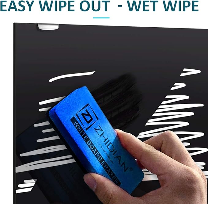 - 【BLACK GLASS BOARD FOR WALL】EYE-CATCHING black glass board features a sleek and modern design that seamlessly blends with any home or office decor, Resists Ghosting and Staining. Our wall-mounted black glass whiteboard is excellent from design to production, elevate your office/home/school with this elegant magnetic glass board. NOTE: The metal board on the back is white