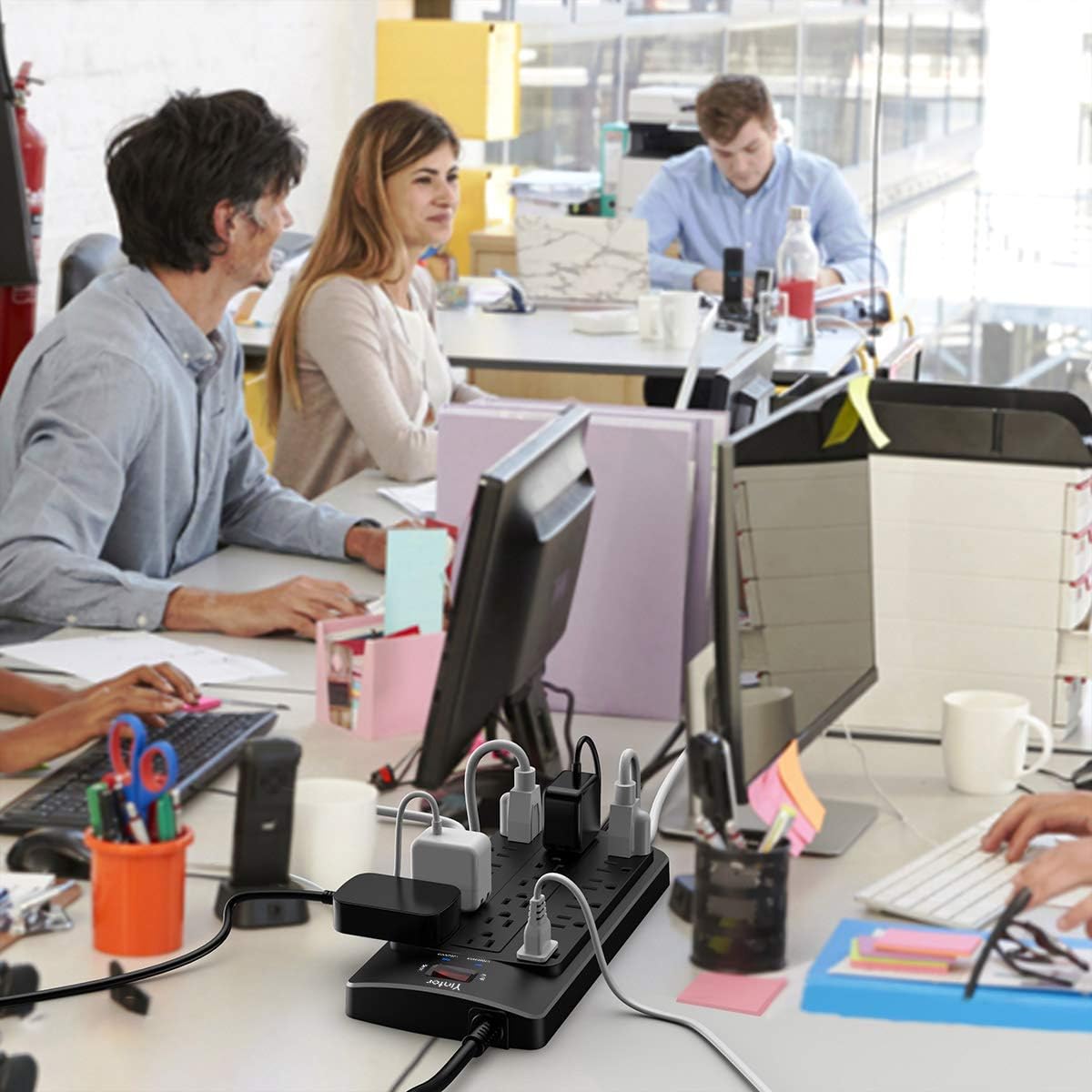 6FT Yintar Surge Protector Power Strip - Flat Plug Extension Cord with 18 AC Outlets for Home, Office, Dorm Essentials, 2100 Joules, ETL, Black