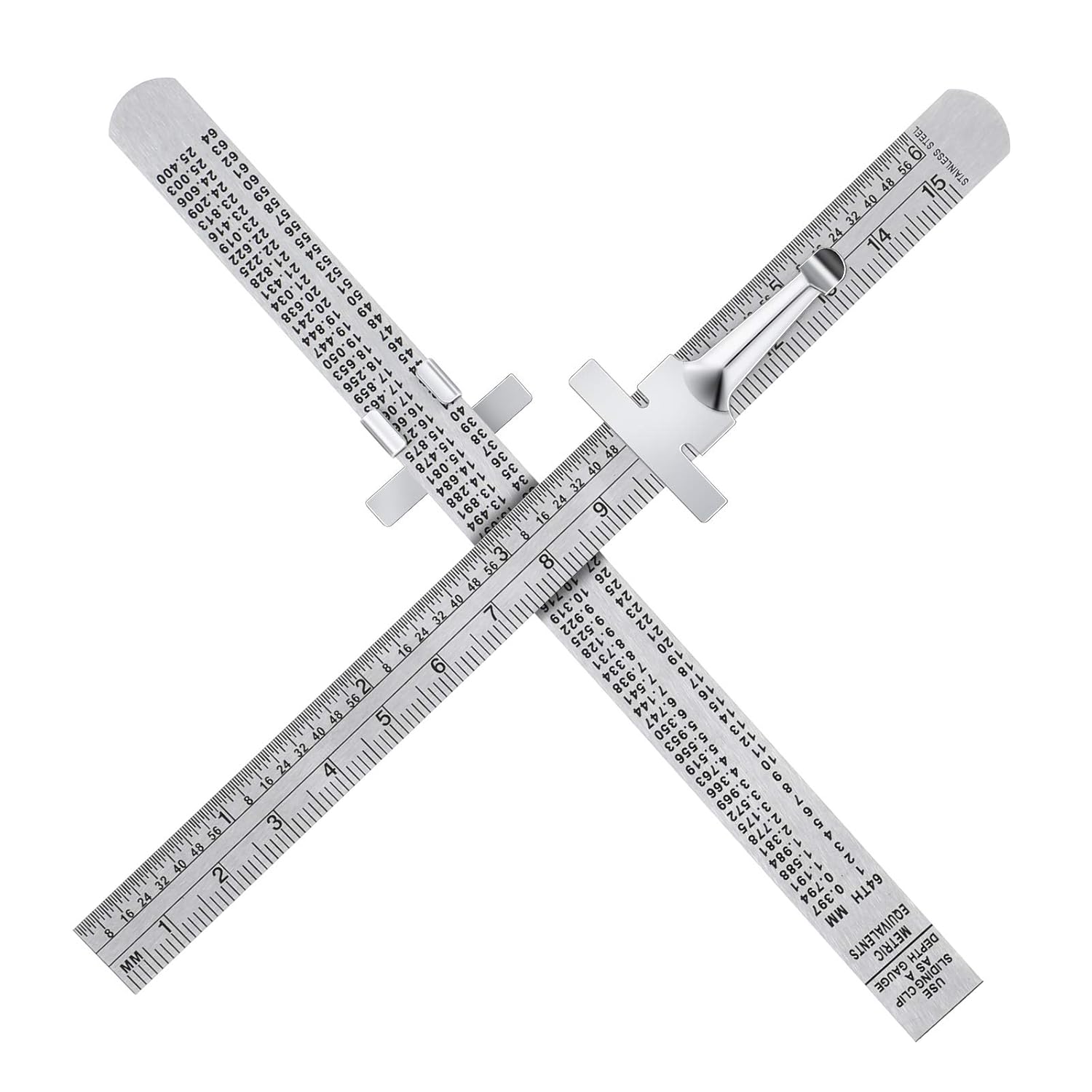 - Steel Ruler: the back of 6 inch ruler is engraved with a conversion table from inches to mm, which facilitates the conversion of various measurement data, offering you considerable convenience