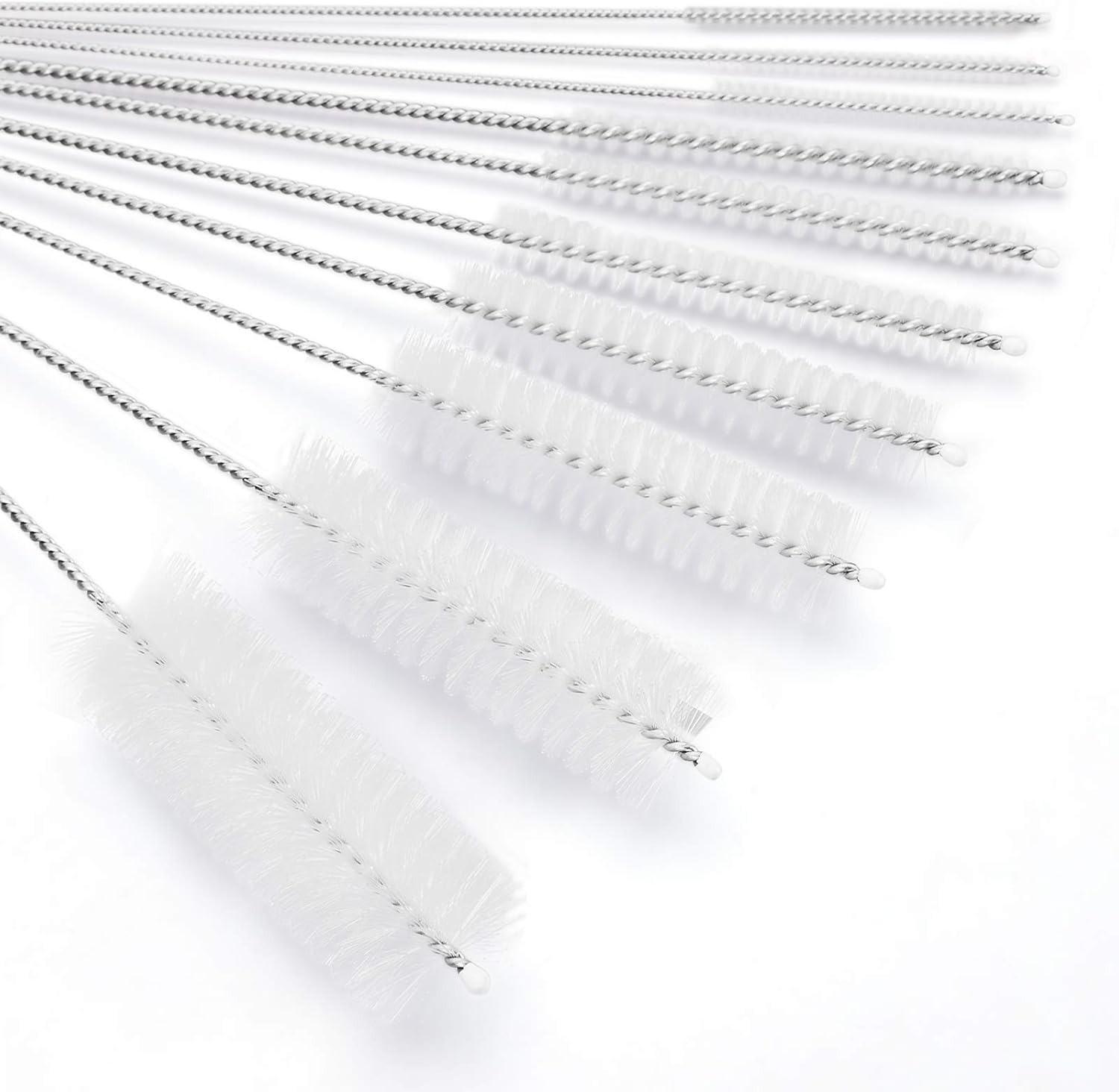 CiaraQ Bottle Cleaning Brushes, 8 Inch Nylon Tube Brush Set, Cleaner for Narrow Neck Bottles Cups with Hook, Set of 10pcs. White