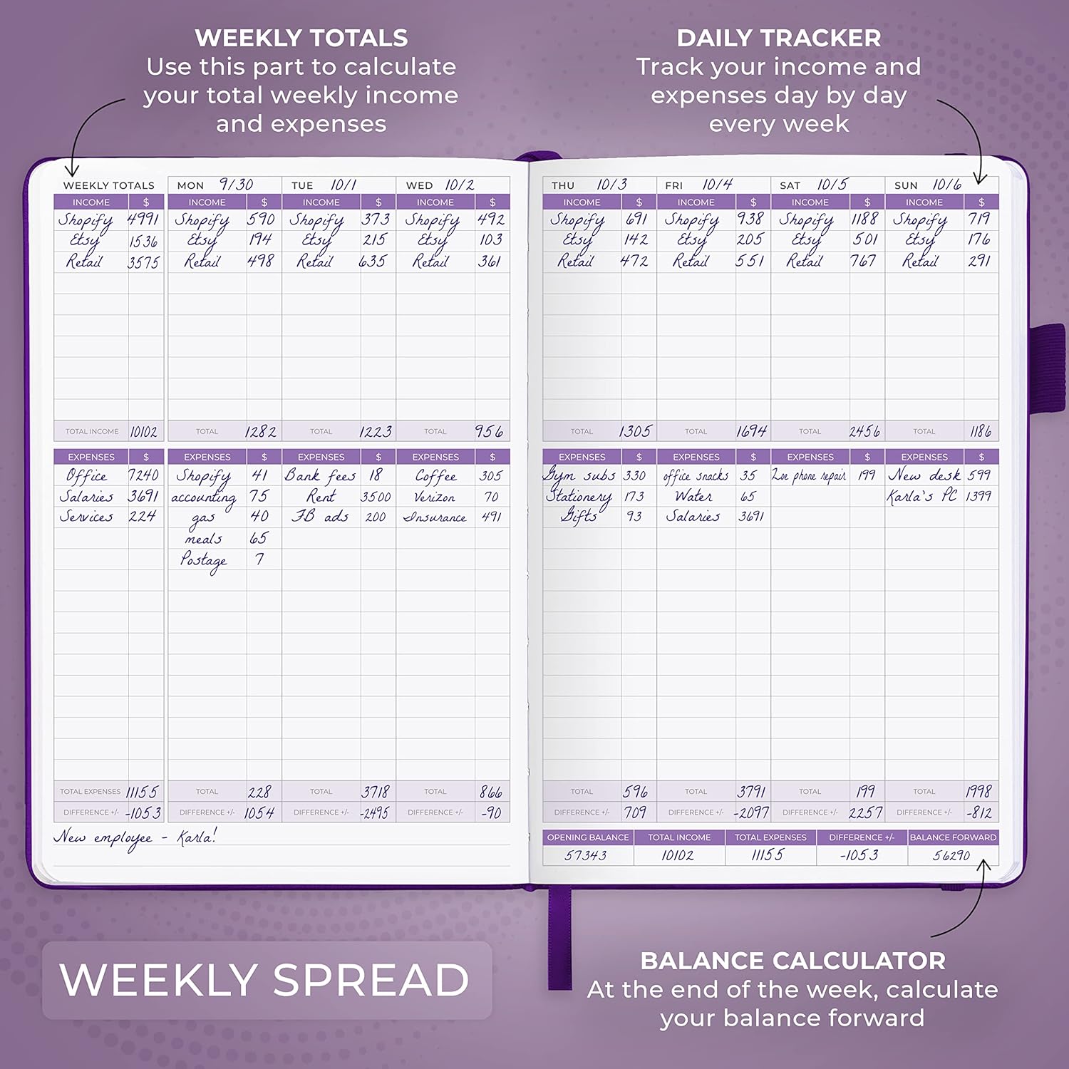 - SWITCH TO EFFICIENT & STRESS-FREE ACCOUNTING: This accounting book is undated and lasts a whole year and has 113 pages, including 53 weekly views, an annual summary, empty note pages, and, at the back, a spacious pocket for receipts.