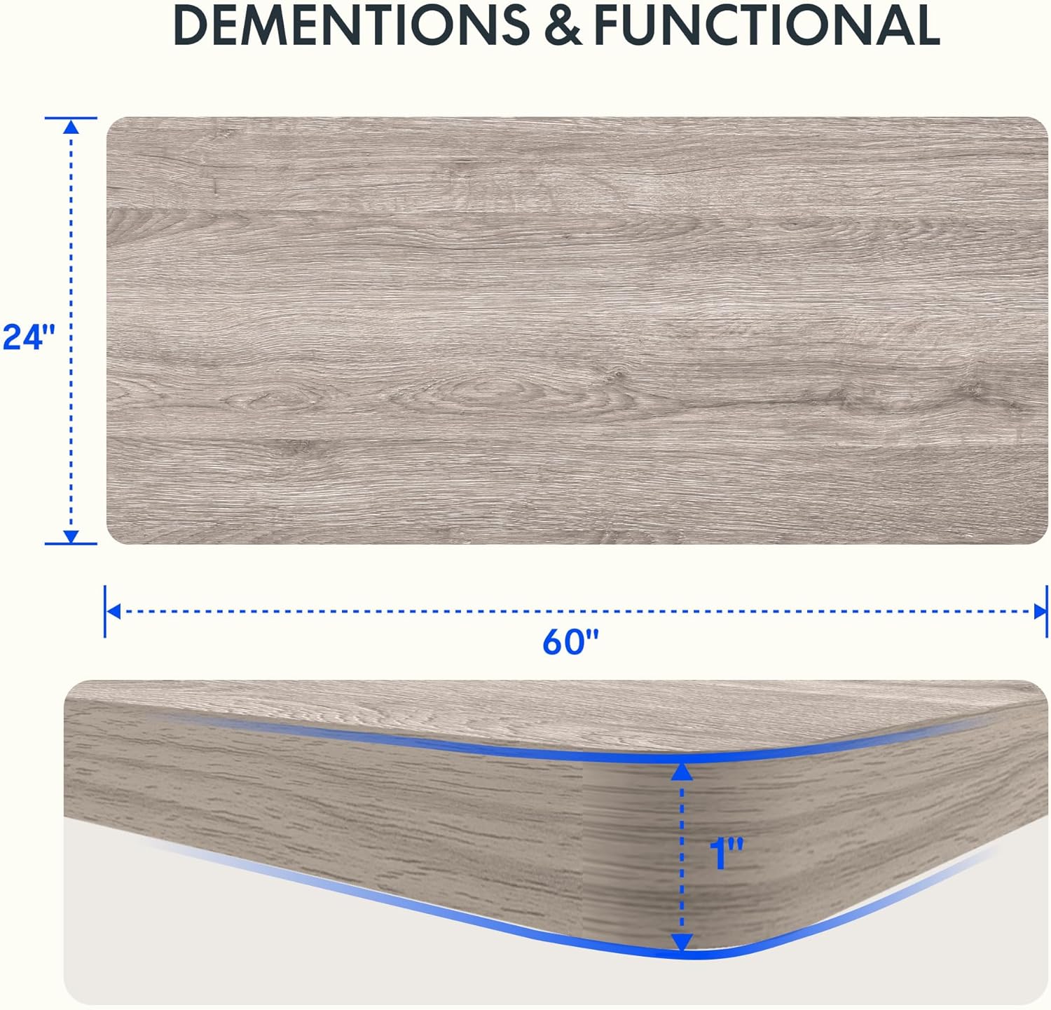 FLEXISPOT EN1 Whole Piece Standing Desk, 60 x 24 Inches Height Adjustable Desk Electric Sit Stand Desk for Home Office (Black Frame + Gray Wood Desktop, 2 Packages)