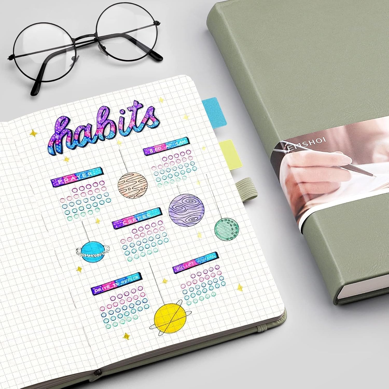 - A5 Graph Journal Features: Each A5 graph notebook comes with an Elastic Closure, 1 Pen Holder Loop, 2 Bookmarks,1 Back Pocket, Free Sticky Notes and humane Rounded Arc Corner Design