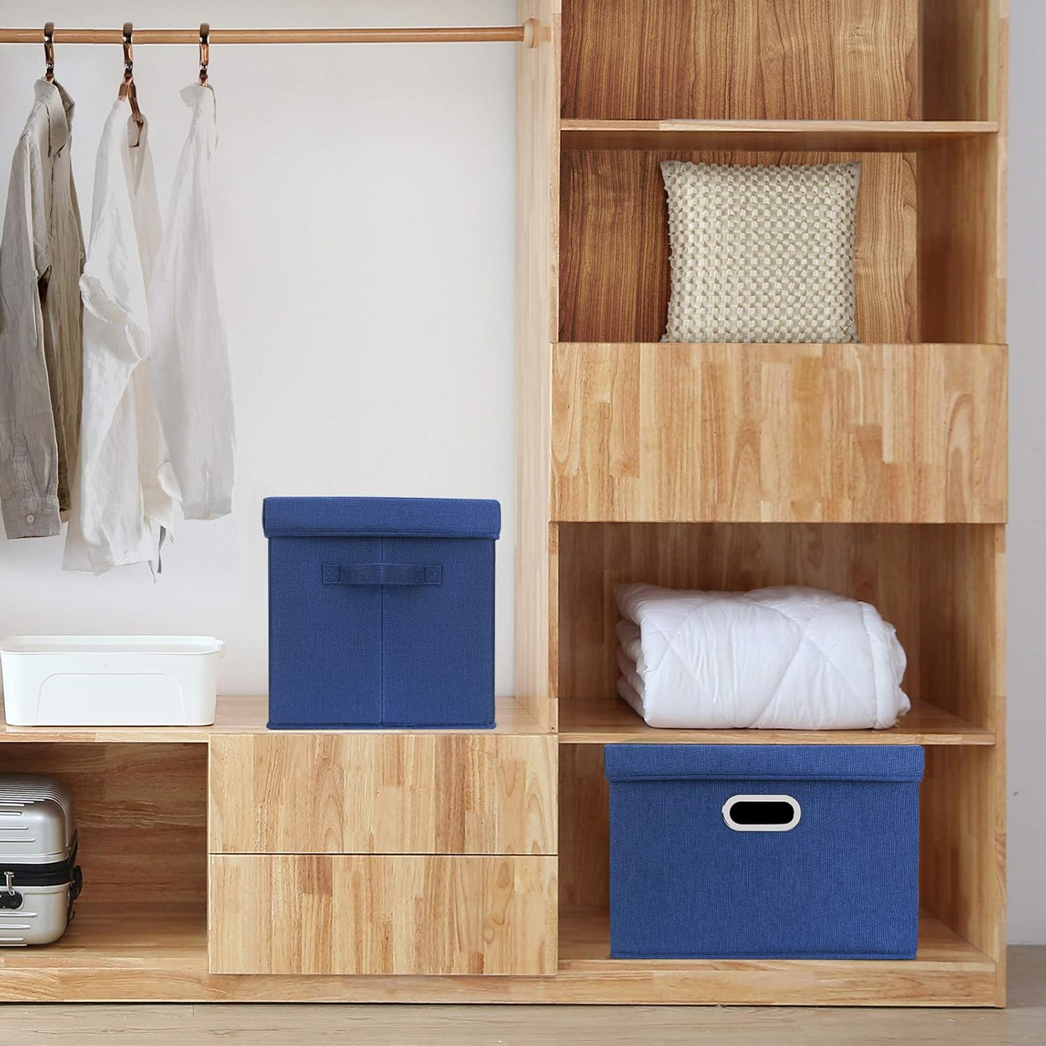 TYEERS Collapsible Storage Bins With Lids, Large Fabric Storage Boxes - 2 Pack - Classic Blue
