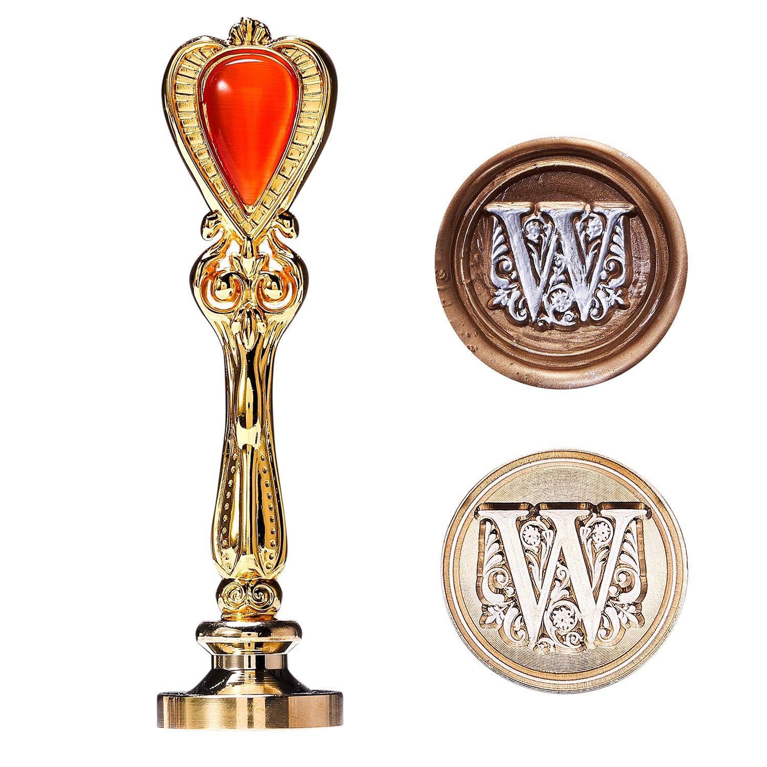 Letter W Sealing Wax Stamp, Alphabet Initial Wax Seal Stamp for Wedding, Come with Retro Handle Red Stone