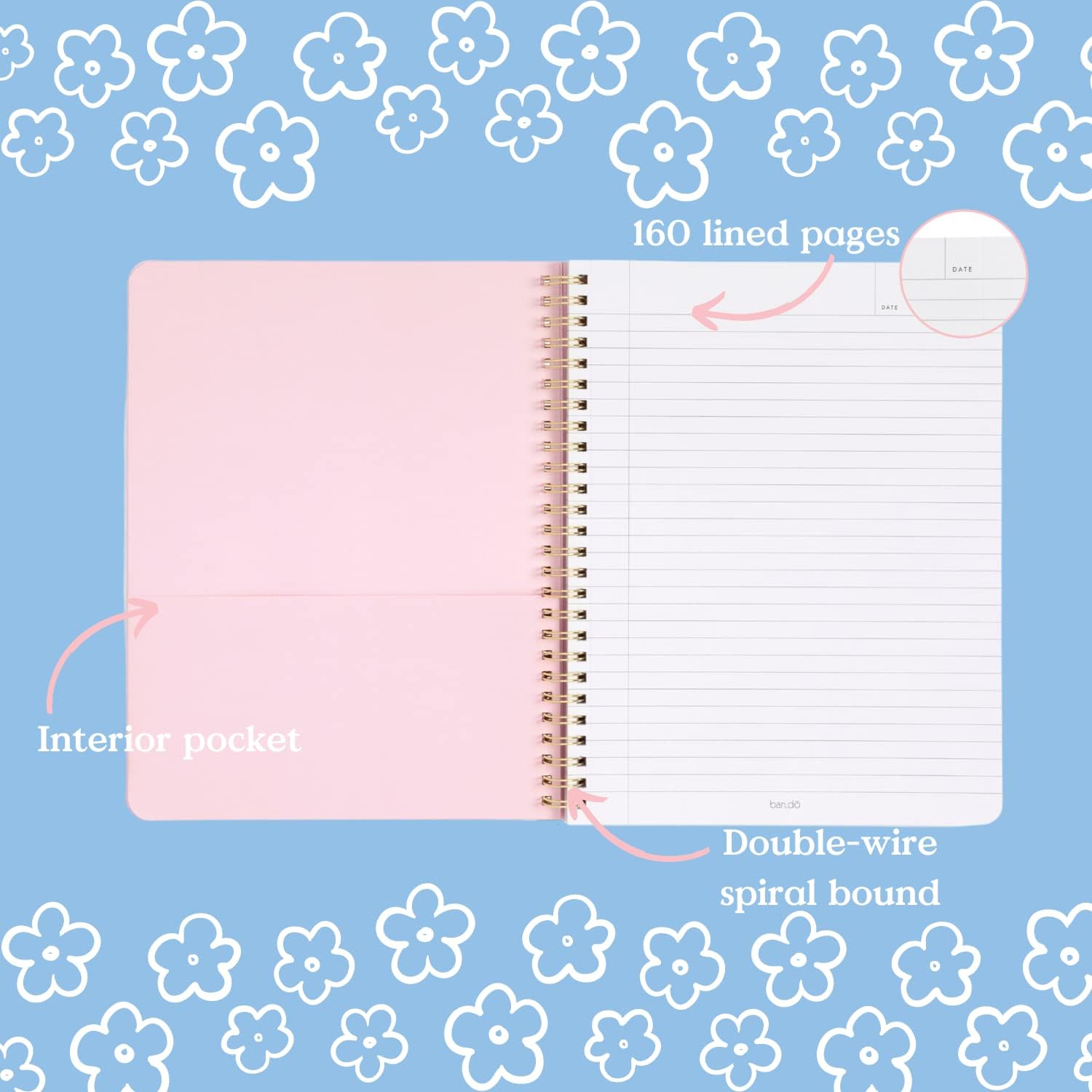 - LAYOUT: College ruled notebook has metal spirals, a pocket page, and an adorable centerfold that doubles as wall art. You'll never want to be without one of these spiral notebooks again!