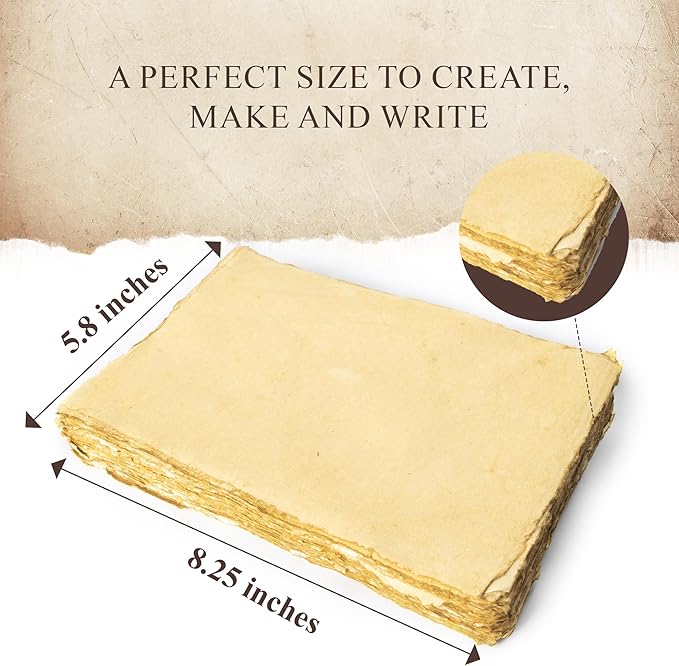 - STYLISHLY MEDIEVAL HANDMADE - These handmade ancient-looking rustic papers are made from environment-friendly raw materials, pressed to make the desired thickness, and sundried. Add your special touch to it and you'll have a piece of art to hand down.