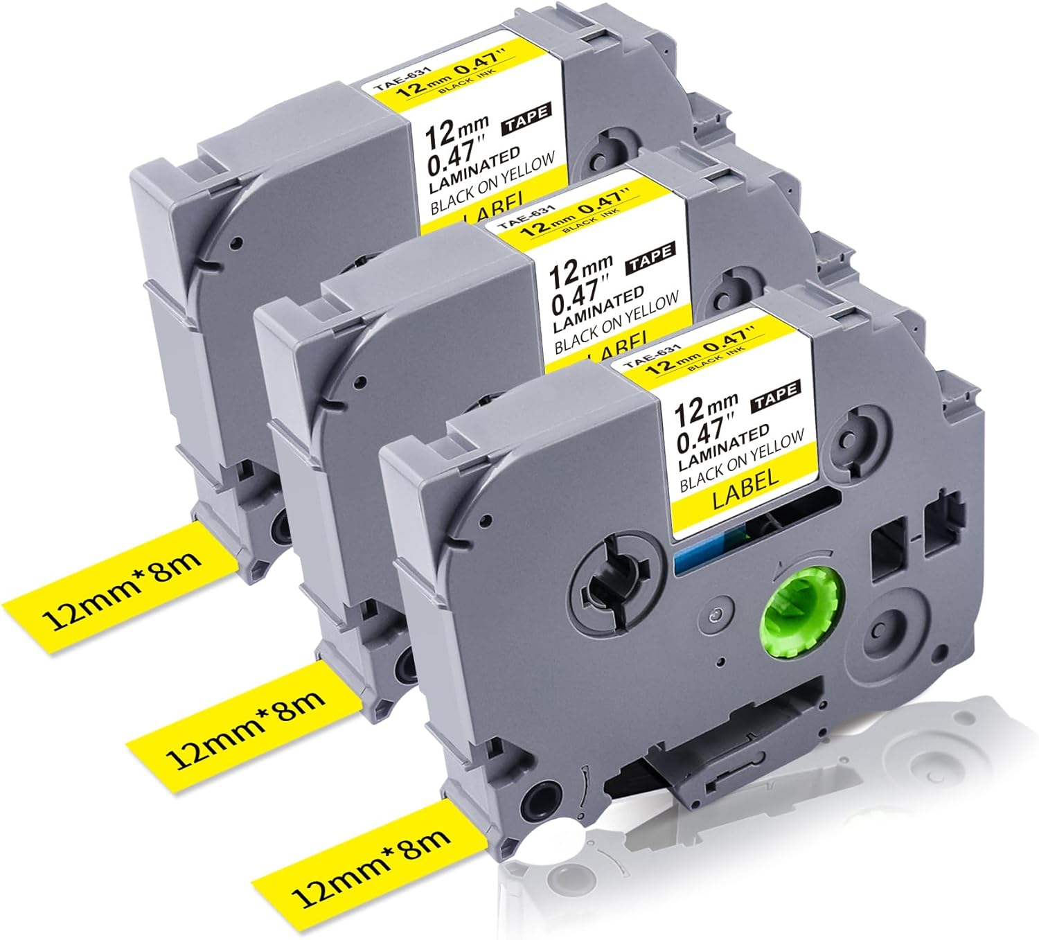 3P Ptouch TZe Yellow Tape 12mm Replacement for Brother Label Tape Yellow TZe-631 12mm 0.47" Laminated,Compatible with Brother Ptouch Label Maker PT-D210 PT-H100 PT-D600 PTD400