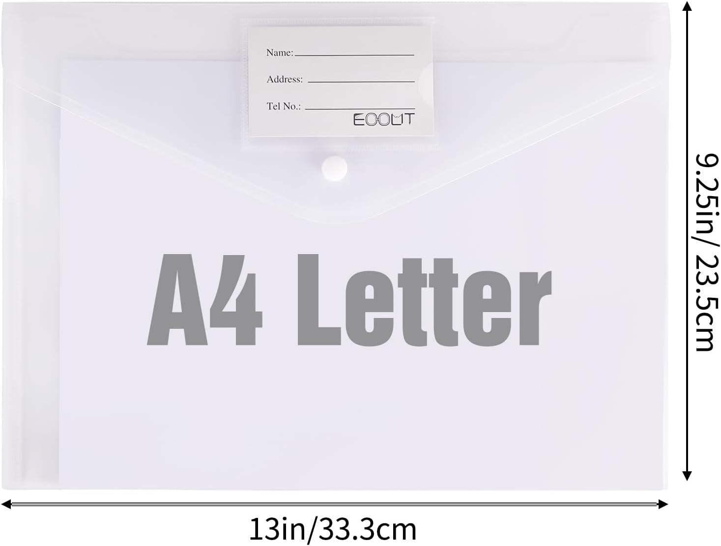 - Design with Snap Closure and Label Pocket: Premium quality translucent document bag with snap closure, easy and convenient to take and store lightweight things, and sturdy to last long after multiple repeats. Plastic Envelopes have a pocket for labels to distinguish documents easily.