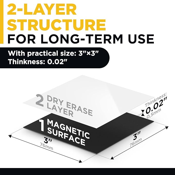 Dry Erase Magnetic Labels - Reusable Sticky Notes - Magnetic Notepads for Refrigerator - Dry Erase Magnetic Sheets - Blank Magnet Stickers to Write On - Magnets for Whiteboard Classroom Fridge