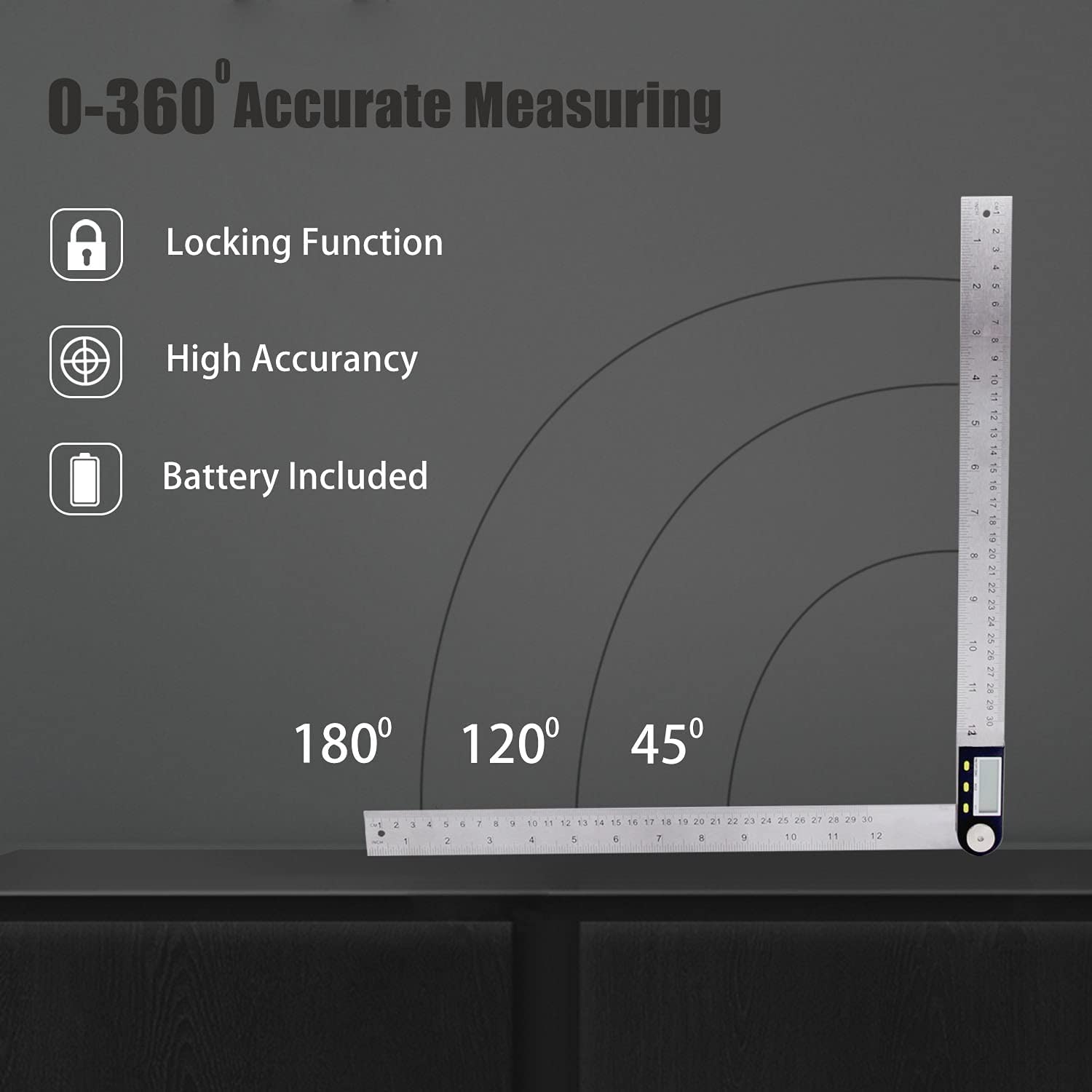 - LCD display: The protractor has a clear, easy-to-read LCD display, and you don't need look and guess at the angle and length anymore.or read it easily,Digital protractor has lock and reverse angle functions that make all types of work easy and fast