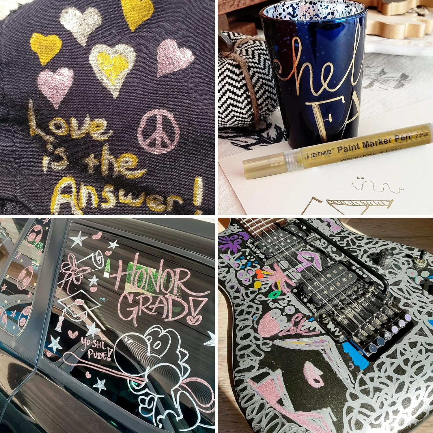 - 【Mark on Dark or Light Color Surfaces】Eye-catching metallic shining contrast color, polarized color under light.Suitable for leave message and metallic permanent markers. Works on rock,fabric,ceramic, glass, wood,plastic,canvas, mugs, blackboard almost any solid surface