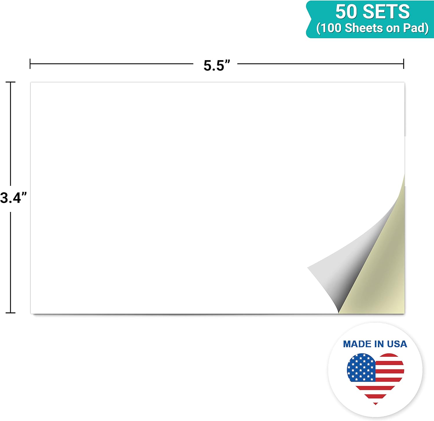 321Done 2-Part Blank Carbonless Pad, 3.4x5.5 Landscape, Made in USA, Pocket Size Carbon Copy Memo Scratch Note Pad, Sketchbook, Sales Book for Craft Boutique Business (50 Sets) White/Yellow