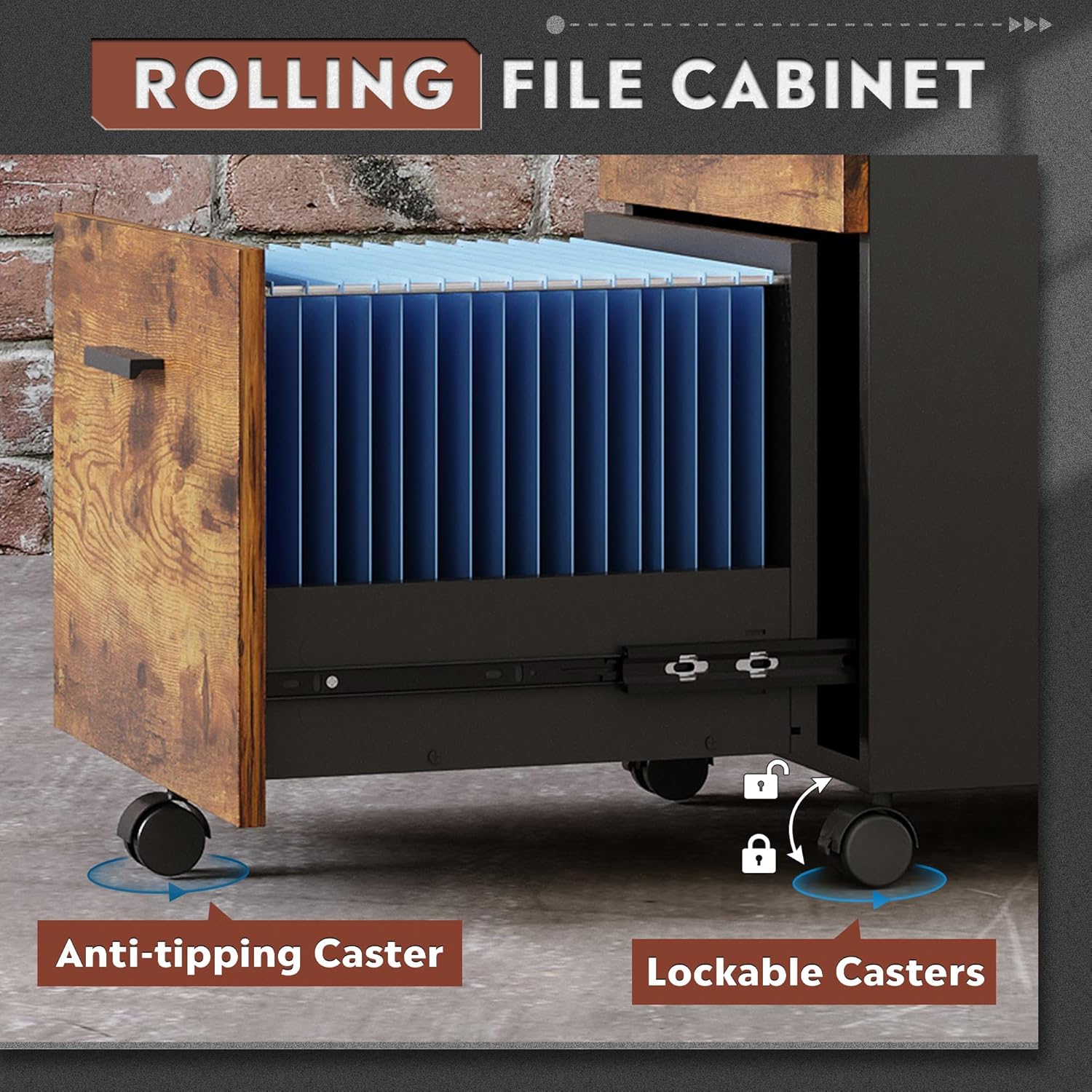 - DURABLE CASTERS: 5 rolling casters which can move smoothly on both wooden floor and carpet. With front 2 lockable breaking wheels, makes office supply rested on top, like printer. Middle caster prevents tipping over when all drawers open at the same time.