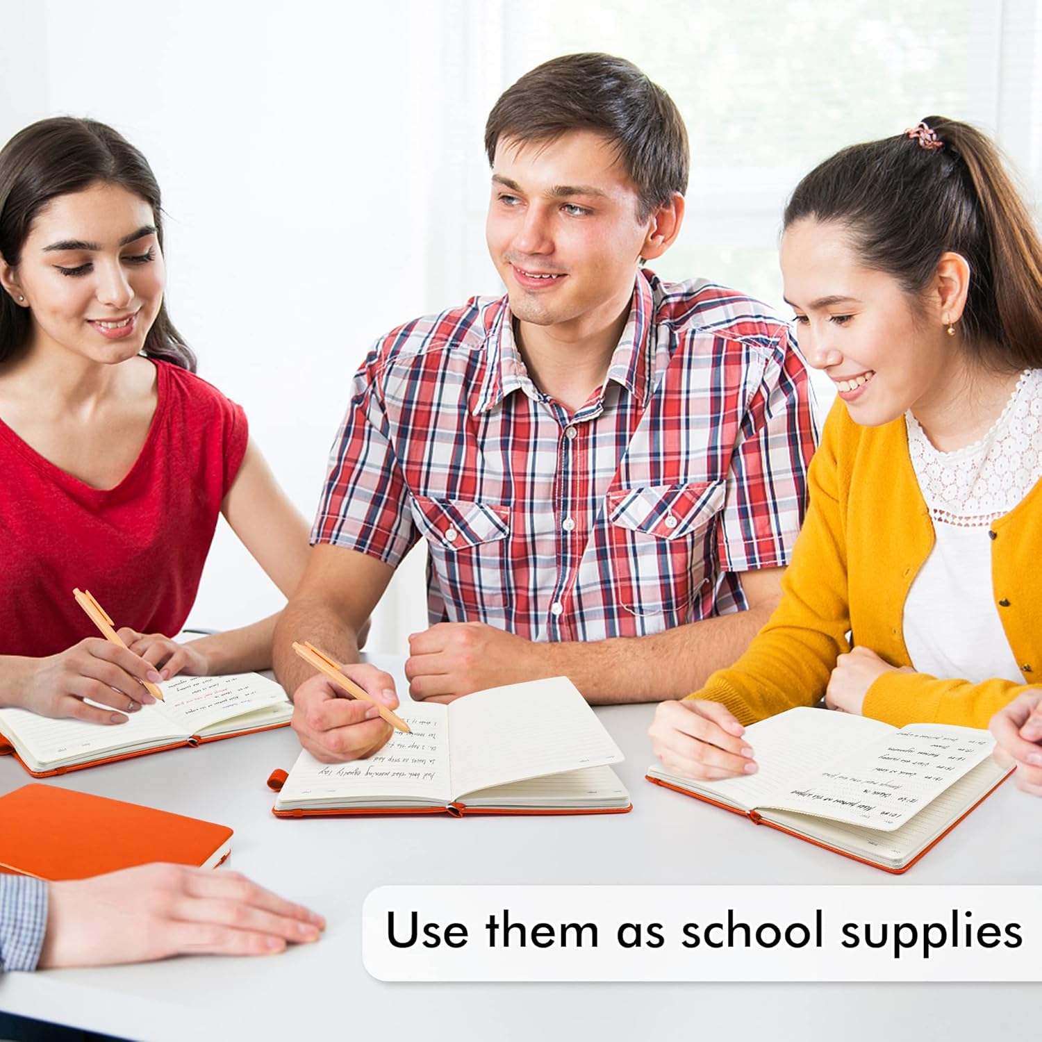 - Feela 5 Pack Classic Ruled Notebooks contains 5 classic orange ruled sturdy cover notebooks and 5 Black Retractable Pens. Each of the notebooks measures 8.3” x 5.1”, which is perfect to carry and easily held by young girls and boys. These black cute pens are customized to be placed in the pen holder, which is pretty convenient.