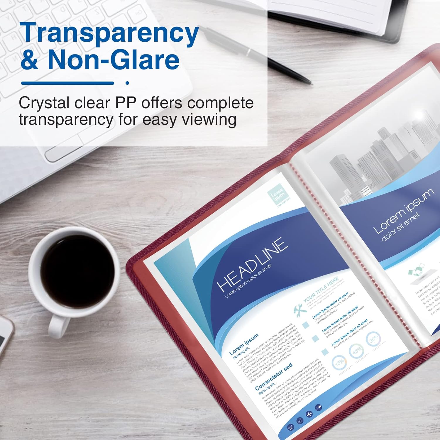 - High Transparency & Lies Flat When Open: Our presentation book with crystal clear PP sheet protectors offers complete transparency for checking through and organizing. Bound sheet protector lies flat when open, free your hands.