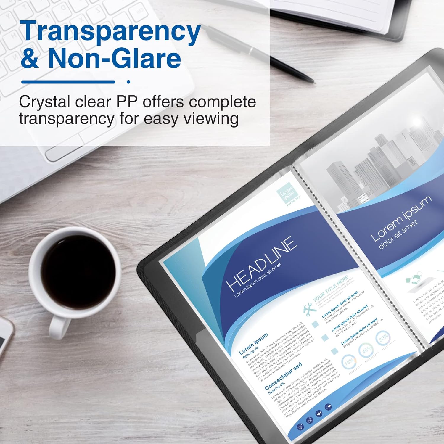 - High Transparency & Lies Flat When Open: Our presentation book with crystal clear PP sheet protectors offers complete transparency for checking through and organizing. Bound sheet protector lies flat when open, free your hands.