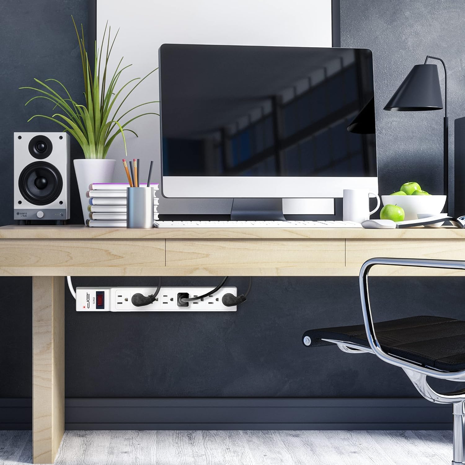 Digital Energy 8 Outlet Surge Protector - 15 AMP, 1875 W, 125 V, 350 J Surge Protection, ETL Listed - Flat Plug (White, 3 FT (Pack of 2))