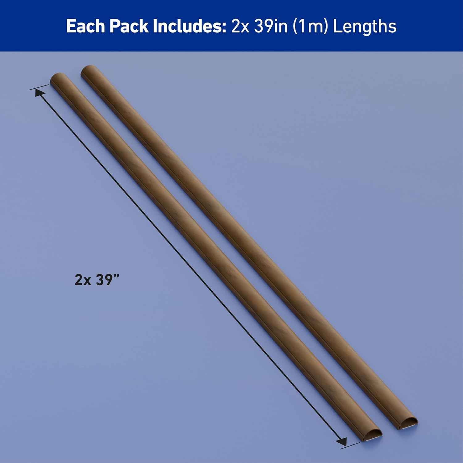 D-Line Half Round Cord Hider, Patented Cable Cover, Hide TV Wall Mount Wires, Raceway for Cords, Decorative Wire Covers, Paintable, Adhesive - 2X 1.18in W x 0.59in H x 39in L - Wood-Effect