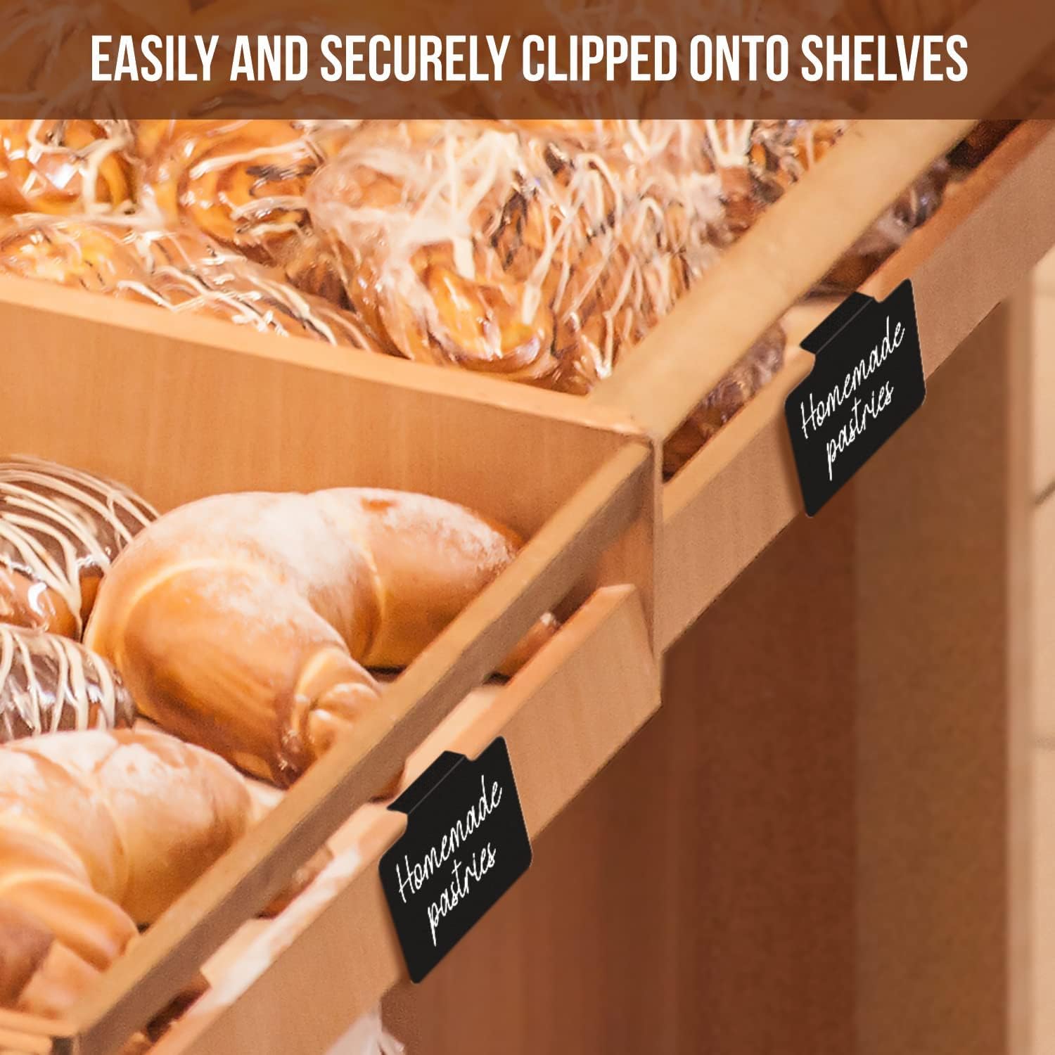 Basket Labels Clip On for Pantry Organization and Storage Baskets Bin Labels - Small Chalk Labels for Baskets - Black Bin Clip Labels for Baskets - Chalkboard Basket Tags Dry Erase Bin Labels Clip On