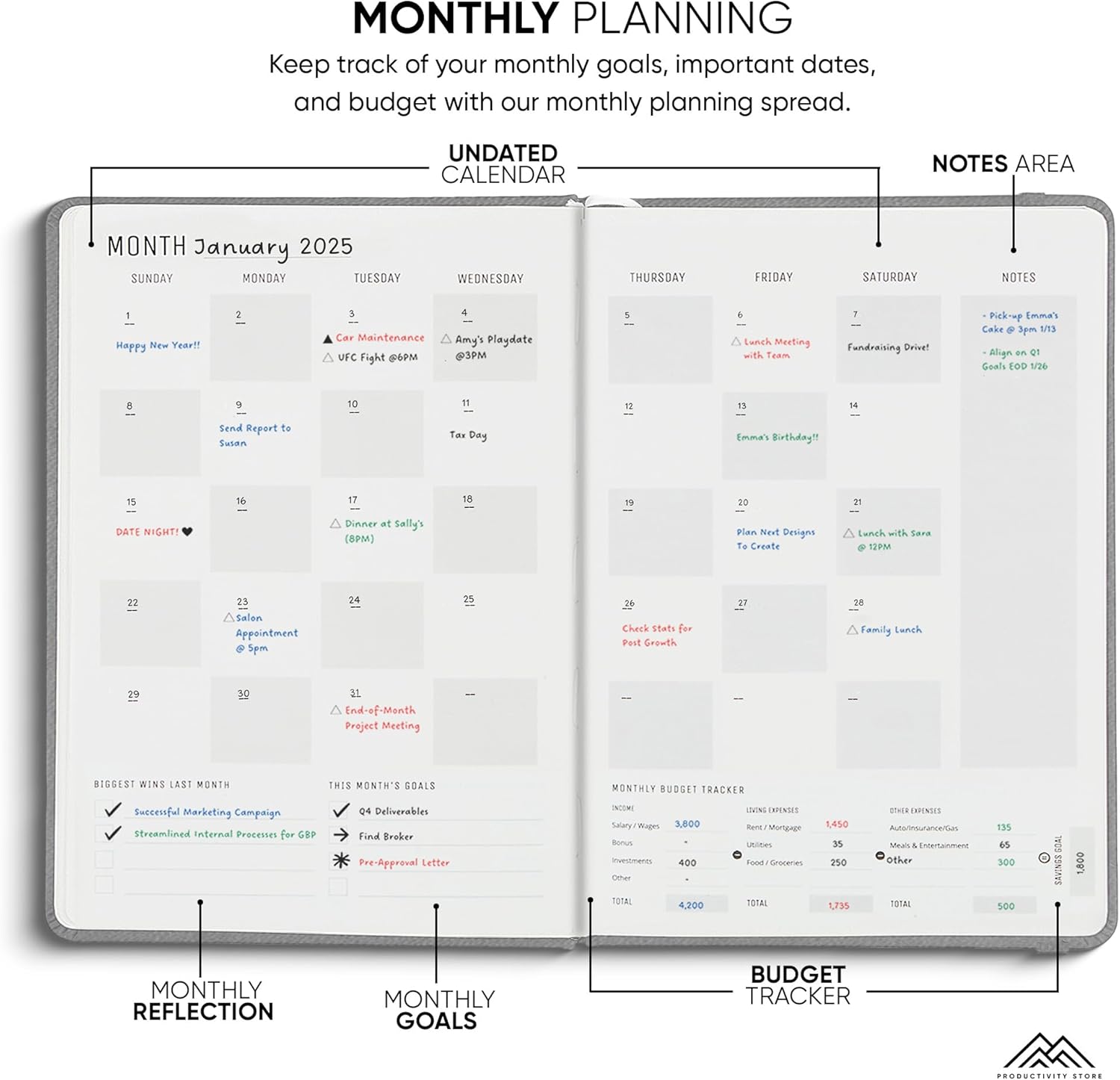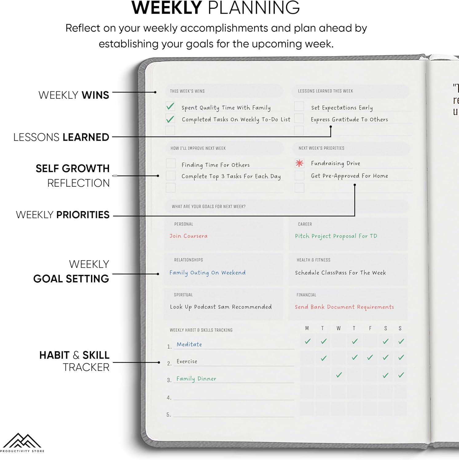 - ✅ SAY HELLO TO THE PLANNER THAT WILL CHANGE YOUR LIFE: Crush your personal and professional goals with Productivity Store’s flagship planner. Get that promotion, start that business or break that bad habit. Evidence-based layouts that increase goal-setting success, happiness and work-life balance.