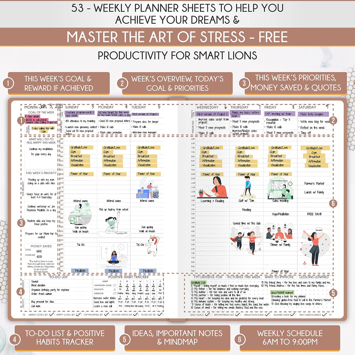 - GOAL SETTING PLANNER - Learn how to set big goals, be happy, and efficiently manage your time by adopting the same tactics used by millionaires to set and achieve them
