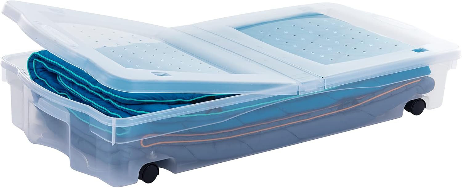 Rubbermaid Cleverstore Under the Bed 70 Qt Wheeled 2-Pack, Clear Storage Bins with Lids, Stackable, BPA-Free, Made in USA