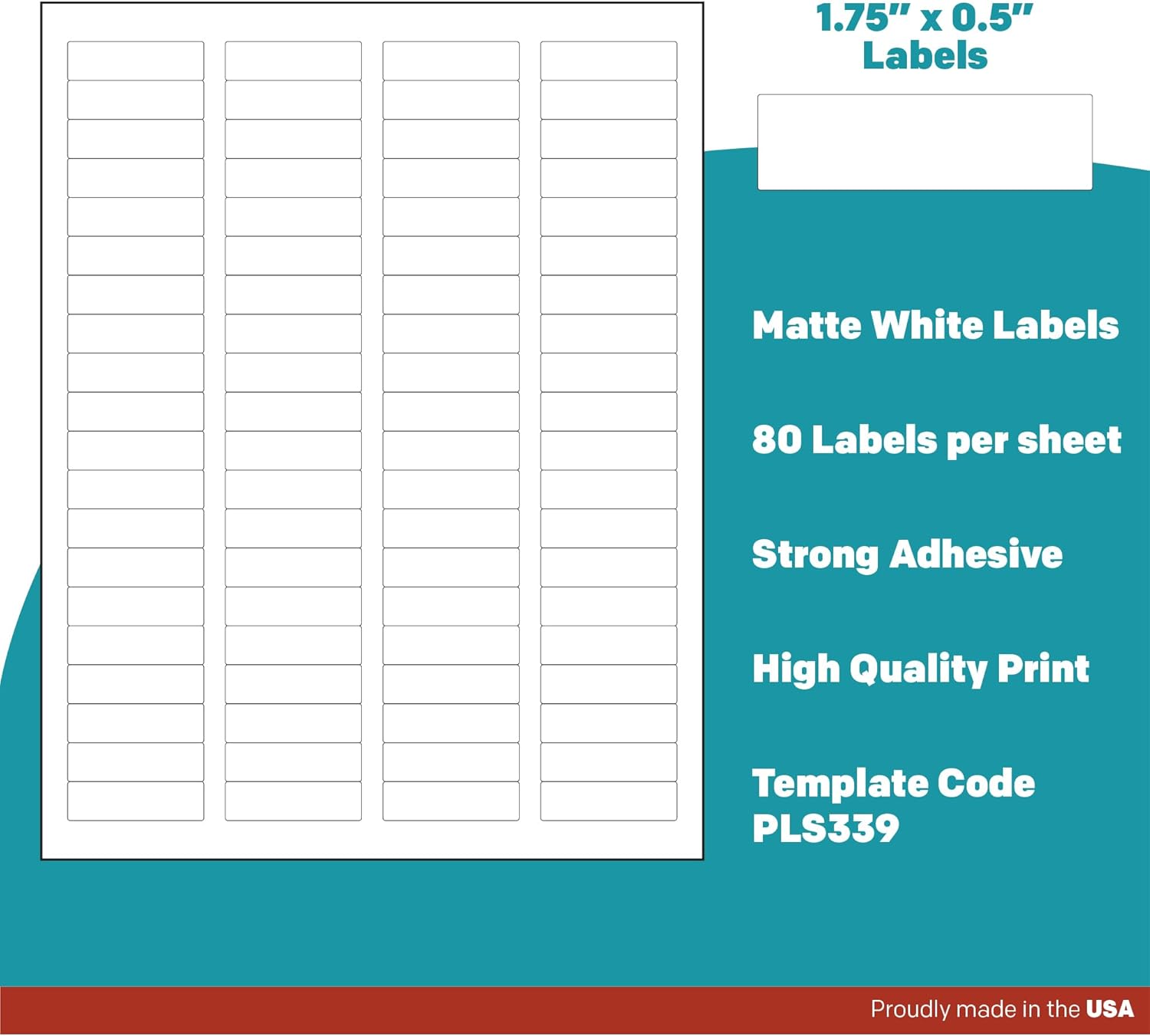 Premium Label Supply White Sticker Return Address Labels – 1.75" x .5" – Laser/Inkjet Compatible – (80 per Sheet), 25 Sheets – 2000 Total Adhesive Labels