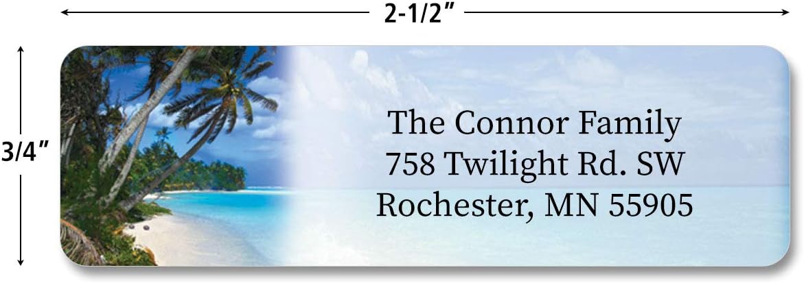 Colorful Images Tropical Paradise Rolled Personalized Return Address Mailing Labels with Dispenser, Customize with Name & Shipping Address, 500 ¾” x 2½” Self Adhesive, Easy Peel Label Roll