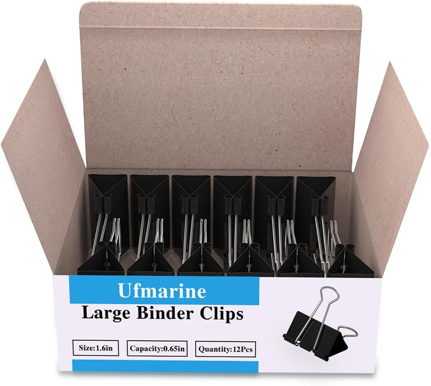 Ufmarine 72 Pcs Large Binder Clips 1.6 inch Length, Big Paper Clips for Office