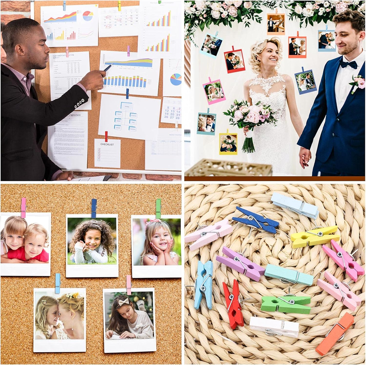 50Pcs Wooden Clips Push Pins Tacks for Cork Board Artwork for Crafts Arts Projects Photo Supplies(Colorful)