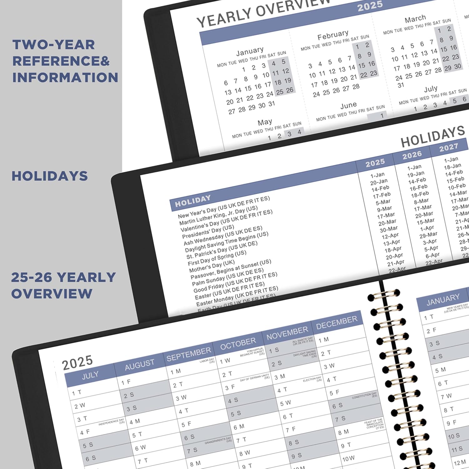 - Appointment Book 2025-2026 - Each spread has the past and the following month as reference for a easier long-term planning; Top goals section helps you to set your priories of this week; To do list section help you to keep organized for the whole week with easier planning and tracking; Weekly review section helps you to improve your time management skills with daily checklist and become a better version of yourself.