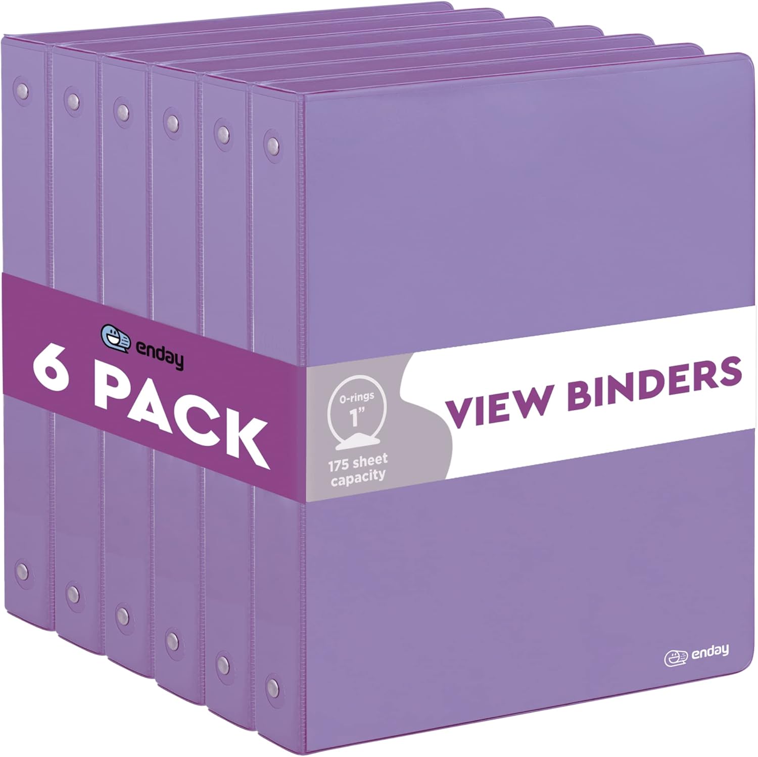 3 Ring Binder Purple, 1 Inch, 1” Clear View Cover with 2 Inside Pockets Round Ring Binder, Colored School Supplies Binders, Also Available in Pink, Blue, Grey, Green, and Red (6 PC) – by Enday