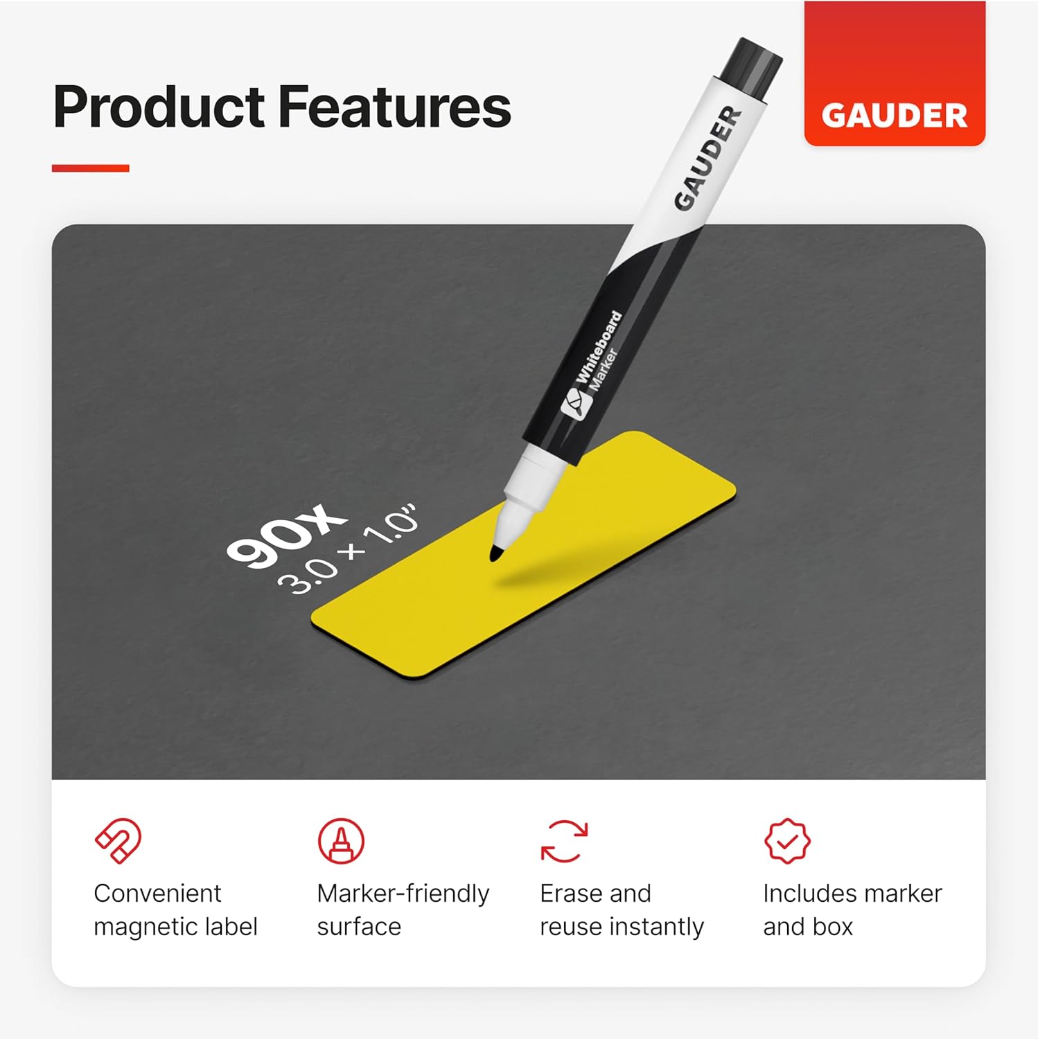 GAUDER Magnetic Dry Erase Labels | 90x Magnetic Labels (3 Inches x 1 Inch) | Dry Erase Magnets for Classroom, Whiteboard and Blackboard